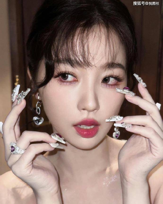 妆造上,蓬松的高颅顶盘发搭配空气刘海,碎发轻拂脸颊的细节强化了清甜的少女感;『妆容』以镜面红唇为核心,细腻的底妆突出肌肤通透感,眼妆采用粉棕渐变眼影叠加珠光提亮,让眼神在灵动中带着柔媚感,整体妆造既保留了『虞书欣』标志性的清甜气质,又不失明艳的时尚锋芒。