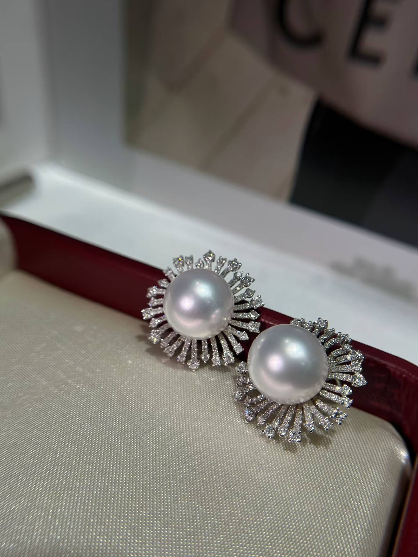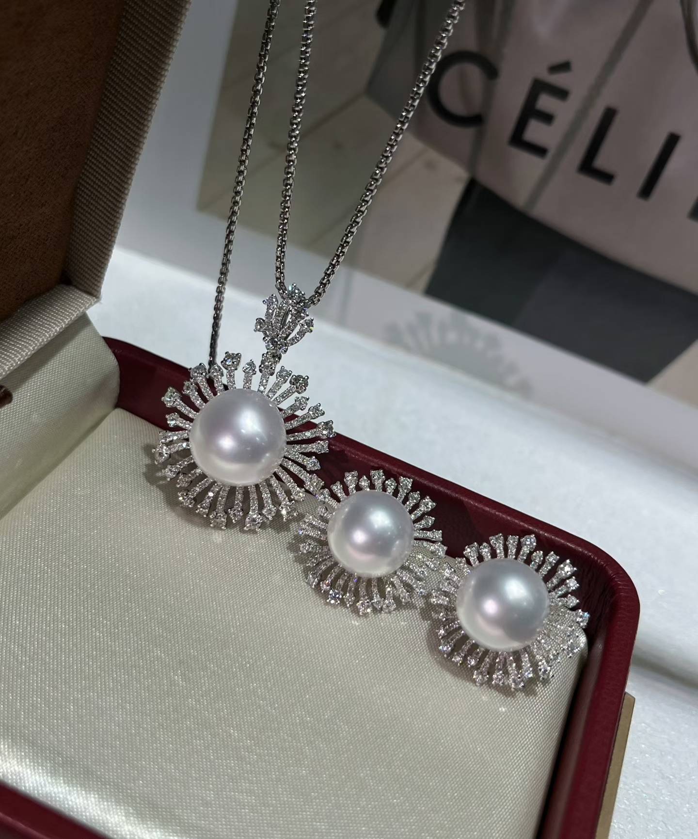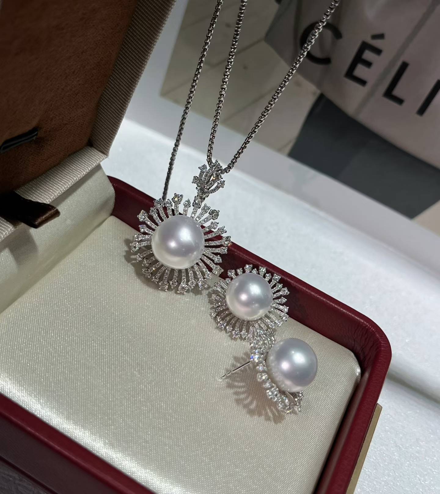18k钻澳白套装,一套不拆!镜面强光,表皮干净吊坠13-14mm 耳钉11-12mm 金总重8.21克,💎2.886ct
