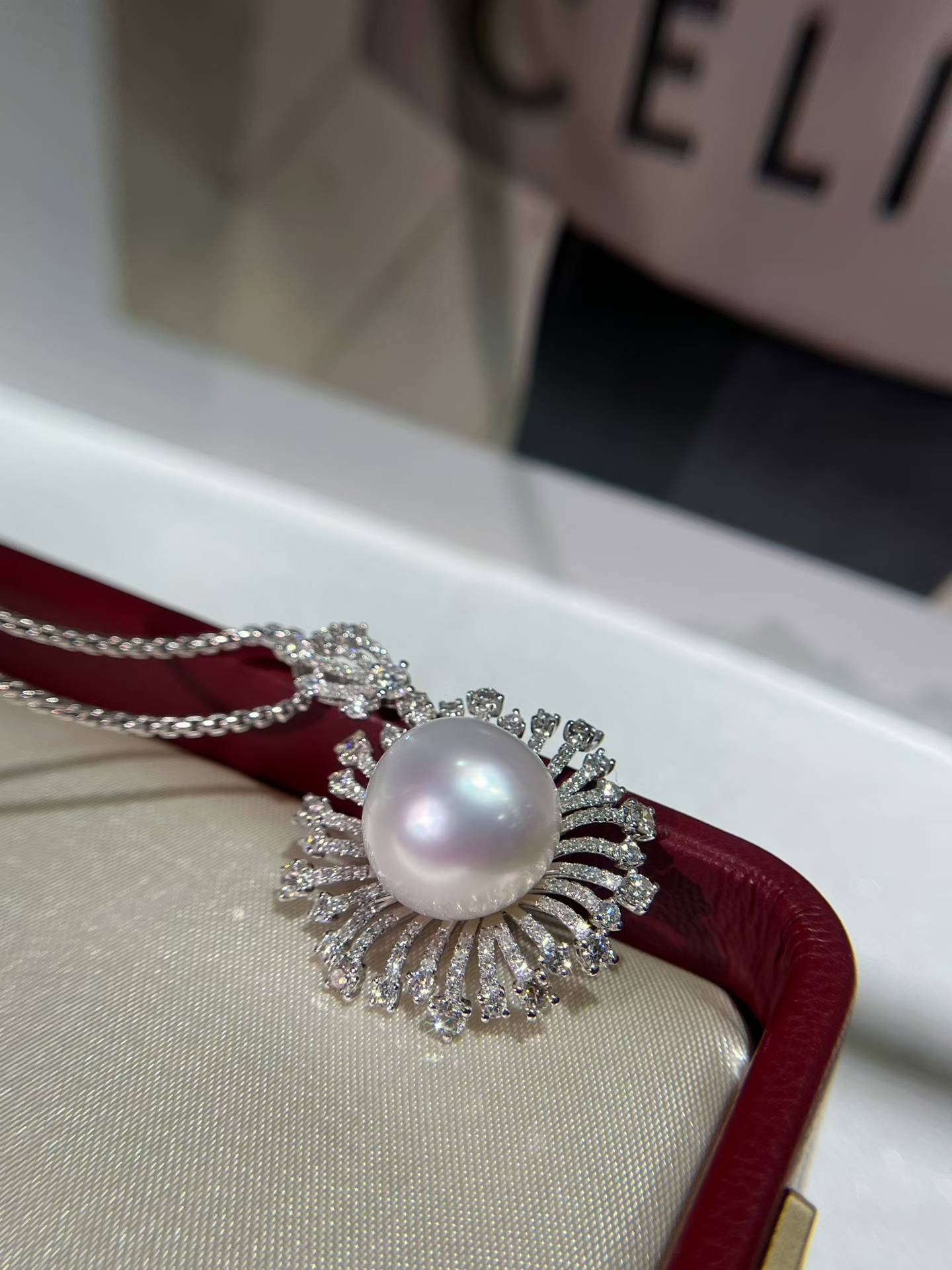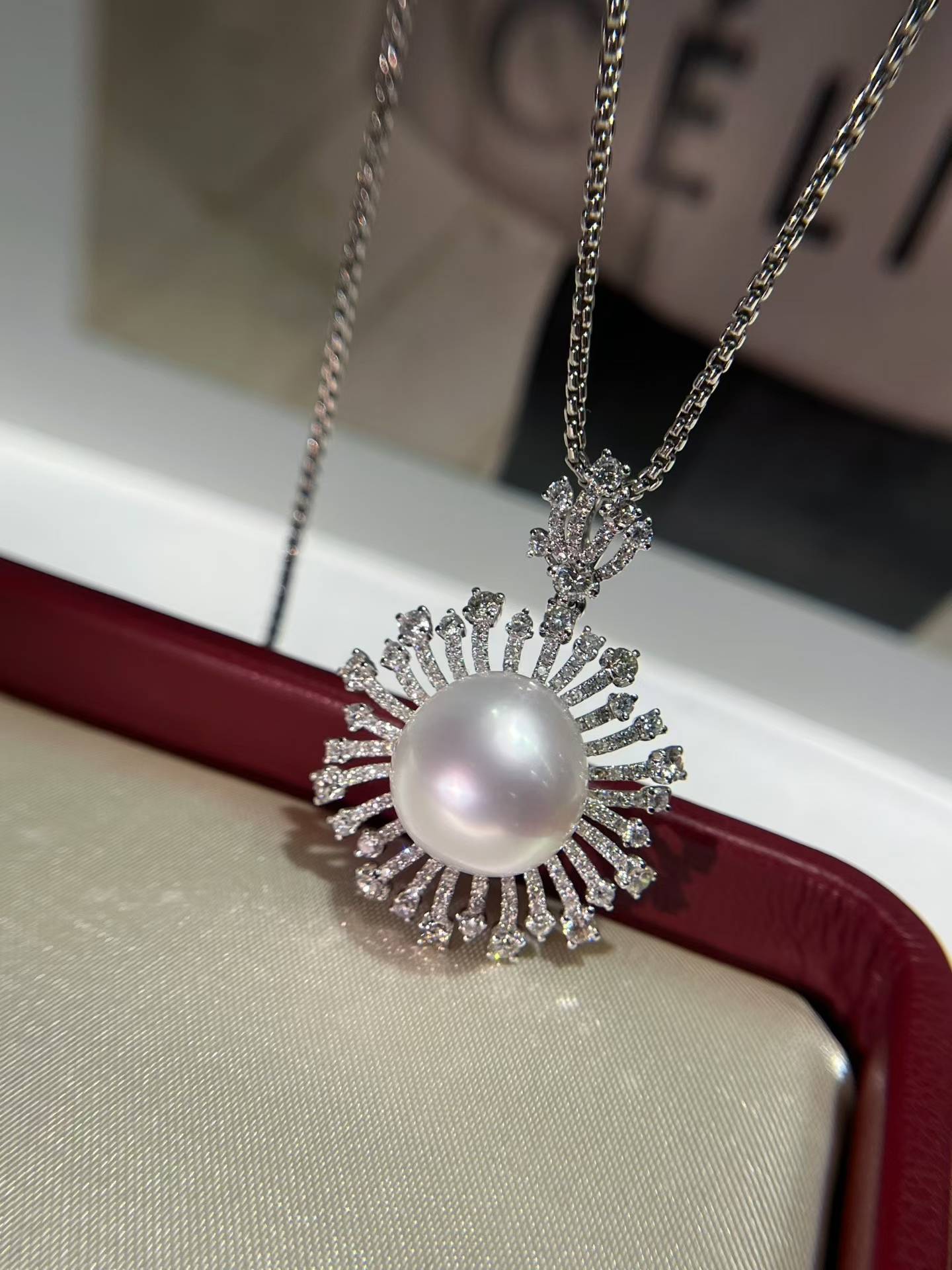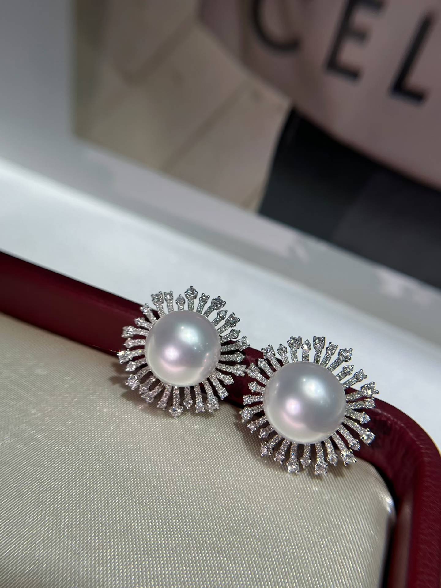 18k钻澳白套装,一套不拆!镜面强光,表皮干净吊坠13-14mm 耳钉11-12mm 金总重8.21克,💎2.886ct