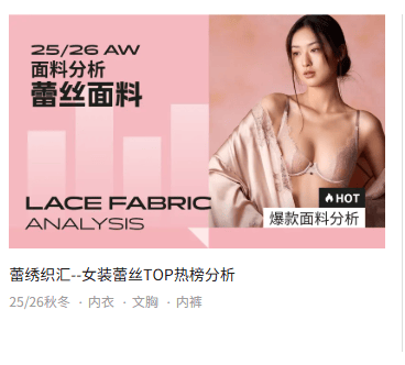 面料和辅料是内衣设计的灵魂,也是决定穿着体验的核心。做设计这些年,我最怕的就是找面料、挑辅料,以前要联系多个供应商、跑线下展会,才能搜集到有限的面料样品,还很难把握最新的面料趋势。POP趋势网完全解决了这个痛点,上面不仅汇总了当下最热门的内衣面料,还有未来面料『趋势预测』,从亲肤的天然棉、莫代尔,到功能性的抗菌纤维、相变调温面料,再到环保再生材料,每一种面料都有详细的特性介绍、应用案例,甚至能找到适配的供应商信息。辅料方面,从蕾丝、橡筋到钩扣,无论是经典款还是创新款,都有清晰的分类和趋势分析,省去了我大量搜集筛选的时间。