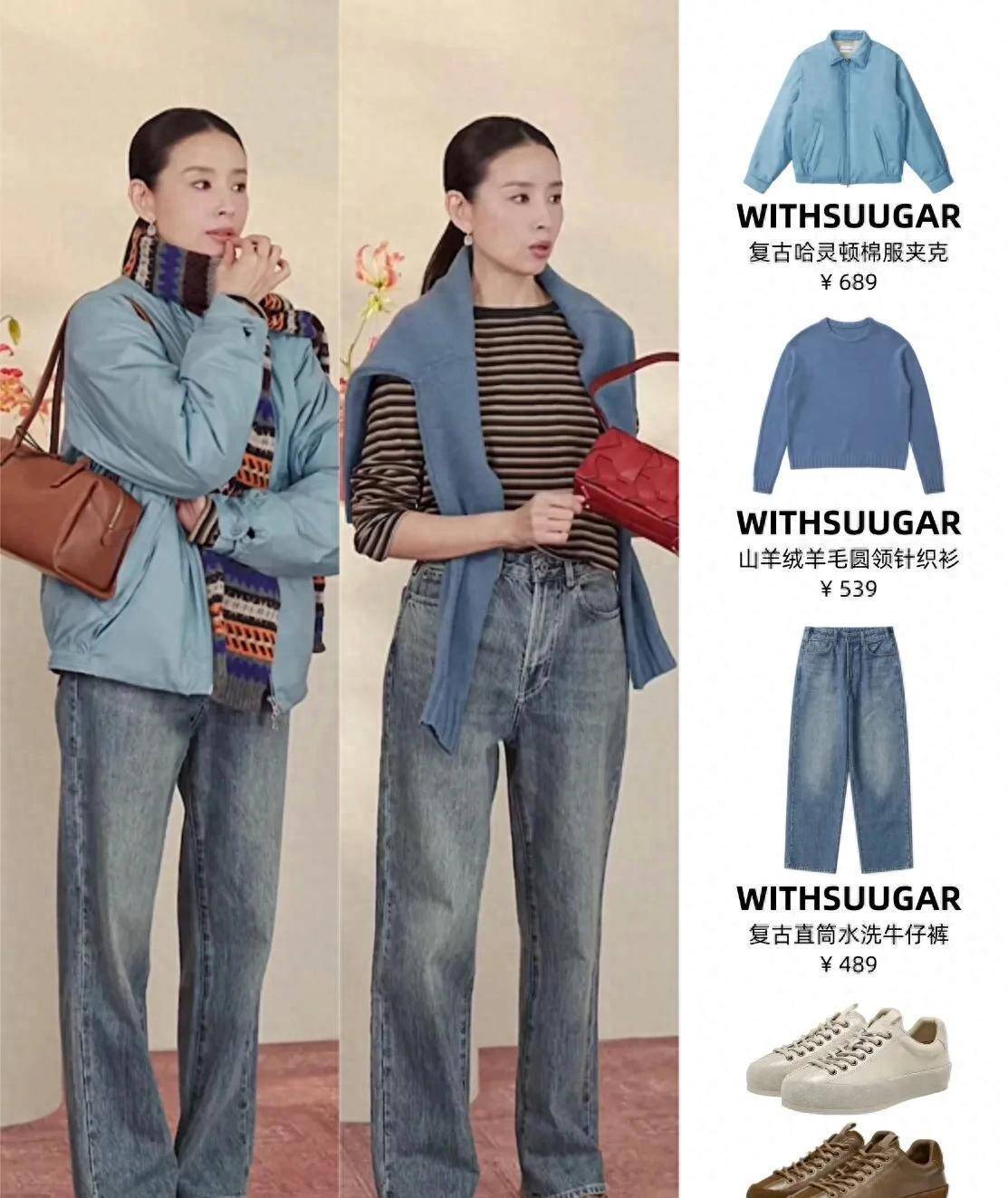 厚底德训鞋鞋底厚3.7厘米,但前掌比后跟薄0.5厘米,走起来像踩旧书堆。 条纹『针织衫』蓝白配比7:,白线略粗不显脏。 浅蓝棉服夹克用90%新疆长绒棉,内衬防静电不吸灰。