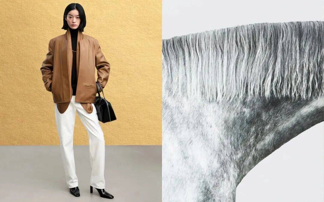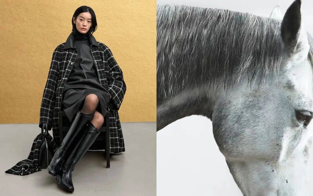 TOTEME的农历新年系列,以品牌标志性设计与马术美学为灵感,展现马驹沉静的力量与隽永的精神。该系列涵盖成衣、鞋履、包袋、配饰与小皮具,通过独家面料与细节重塑经典轮廓。马术元素贯穿全程,包括亮面Box皮革、仿小马毛纹理和现代诠释的窗格纹。标志性的黑白配色为这些设计增添摩登气息,打造极具TOTEME辨识度的单品。