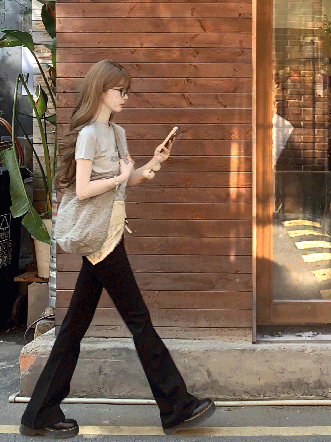 裤子的长度刚刚好到脚背,悄咪咪说一句,在长裤里踩一双老爹鞋、高跟鞋👠,隐形增高,简直就是“作弊神器”。