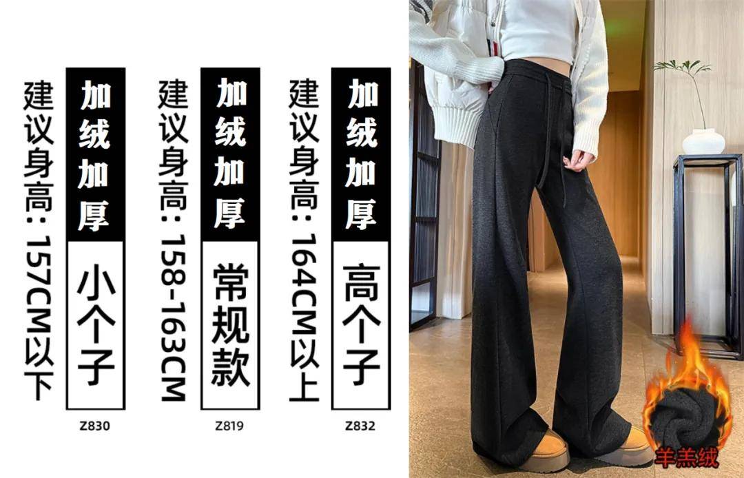 还有一种是加厚羊羔绒,厚实软糯,恒温效果好,保暖性非常高,冬天穿这一条完全足够了!