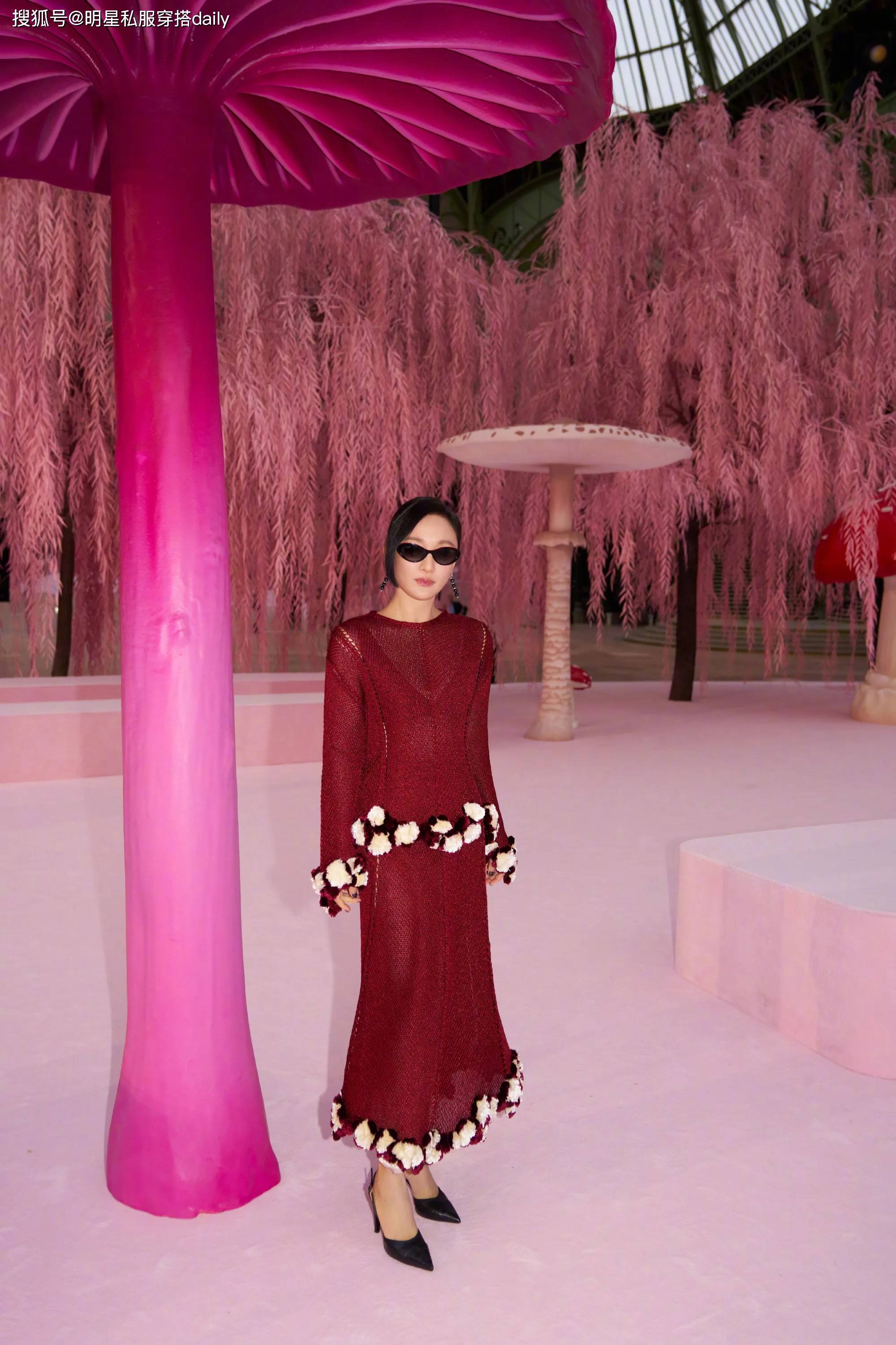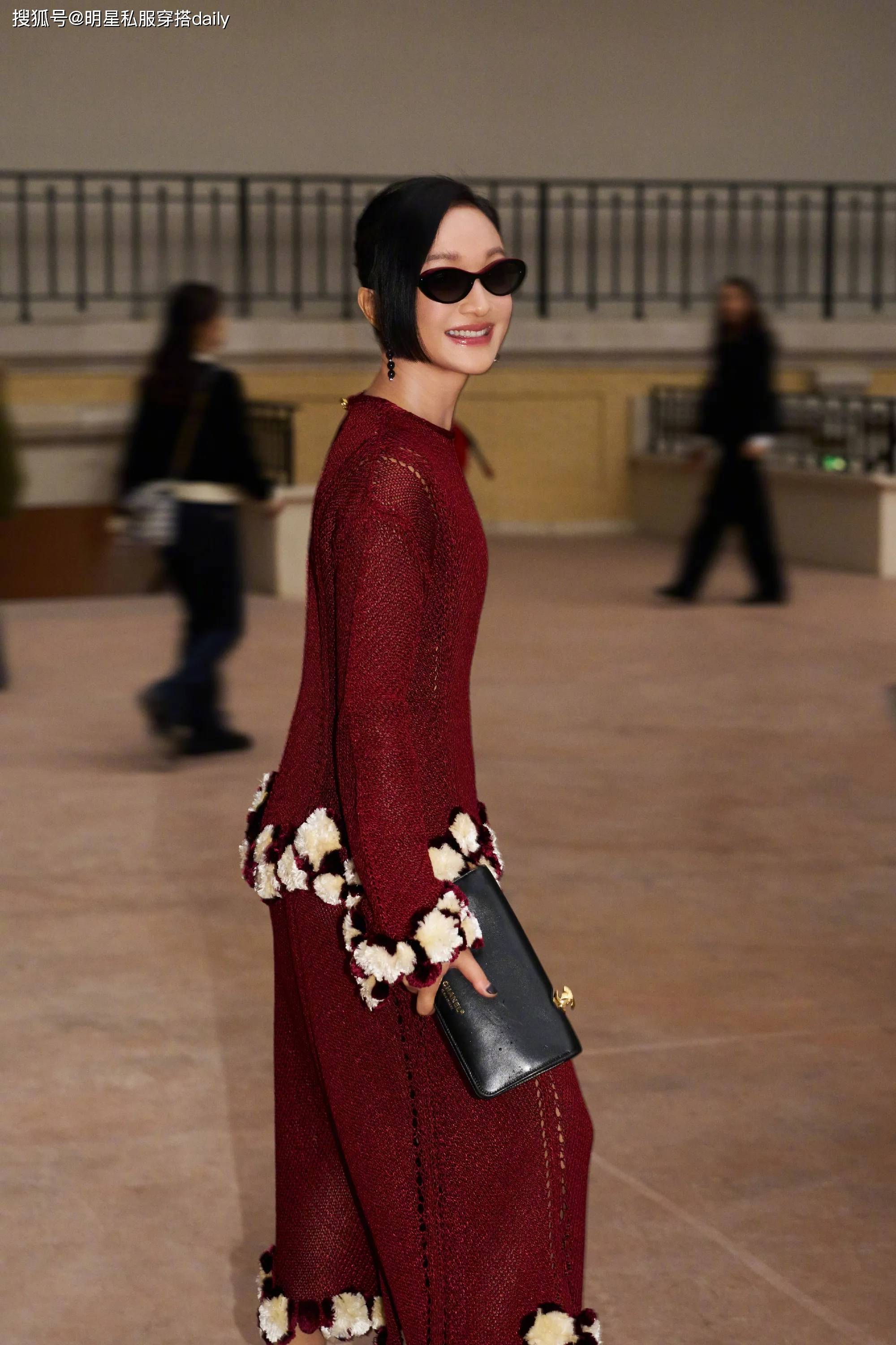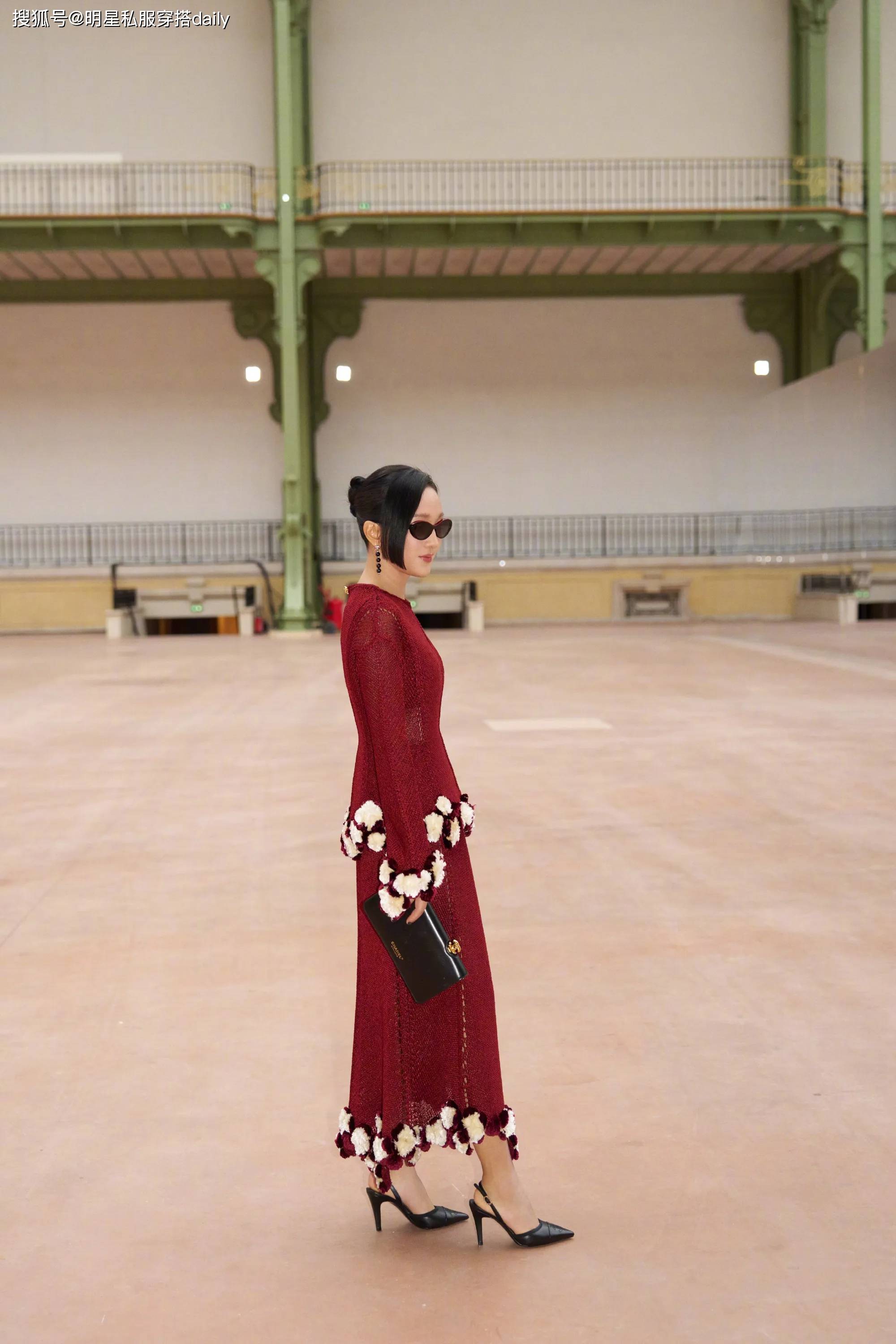 在鞋子搭配上,小个子的『周迅』搭配了黑色高跟鞋👠,比例看起来更加优越!红黑色彩搭配也是经典又耐看!不得不说,这套裙装的色彩成熟又自带韵味感!完美展现了『周迅』的好状态!