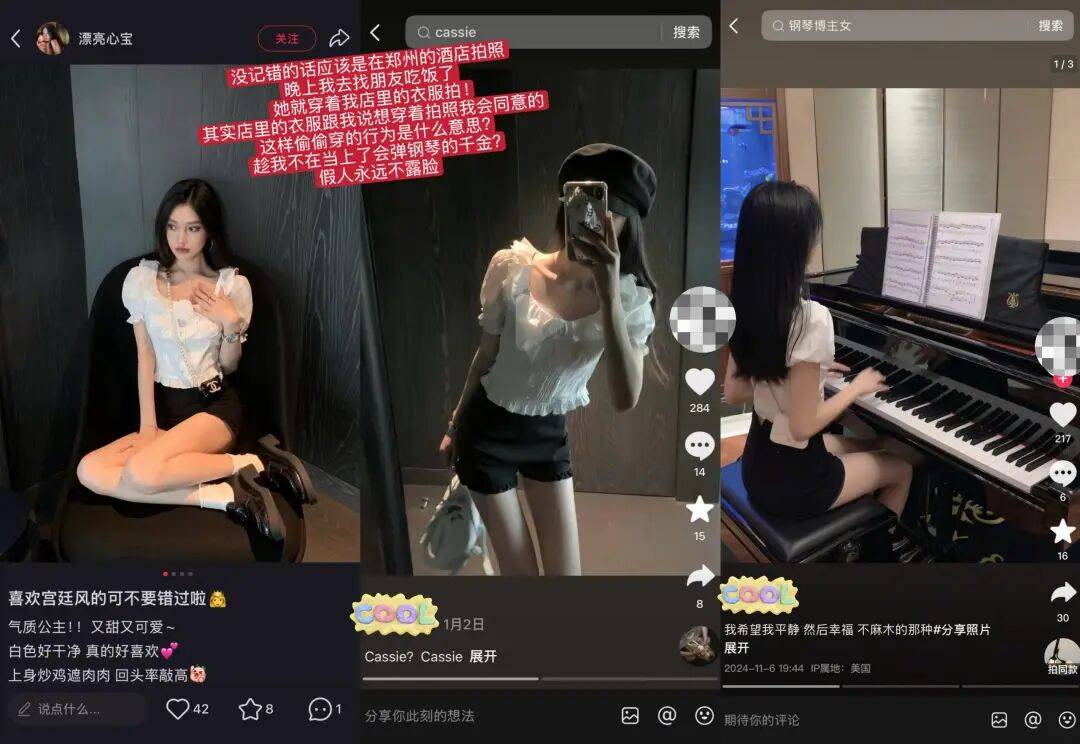 还有@大心Kissis 刚穿过的一套衣服,她直接拿来穿,还摆拍弹钢琴的照片,假装自己是多才多艺的名媛!
