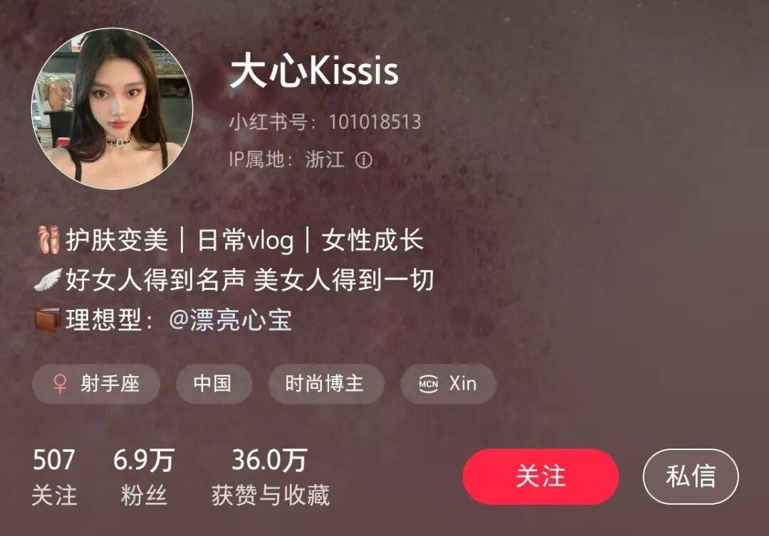 主角🎭️之一,是美妆博主@大心Kissis,6.9万粉丝,在美妆圈也算小有名气。