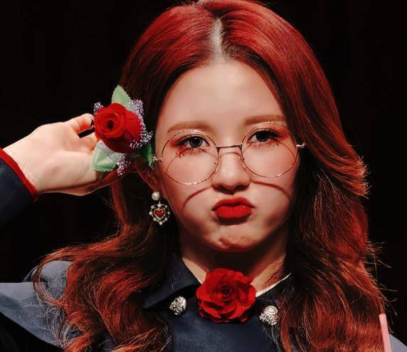 刘些宁本身就拥有着令人惊艳的美貌,成为团里的颜值担当也毫不意外。染上红发后的她,更是美得不可方物。那一头酒红色的秀发衬托着她精致的小脸,宛如一朵盛开的花朵。尽管她耳朵上挂着一只小花耳饰,但无论如何,依旧觉得她比花还要娇艳。她微微嘟起的嘴巴和醉人般的模样,带着一种难以抗拒的可爱,谁能抵挡得住她的魅力呢?