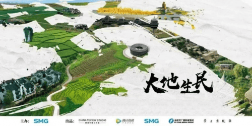 地形轮廓勾勒“野”字,暗指田野孕育生机,对应影片讲述土地之上的人的故事。