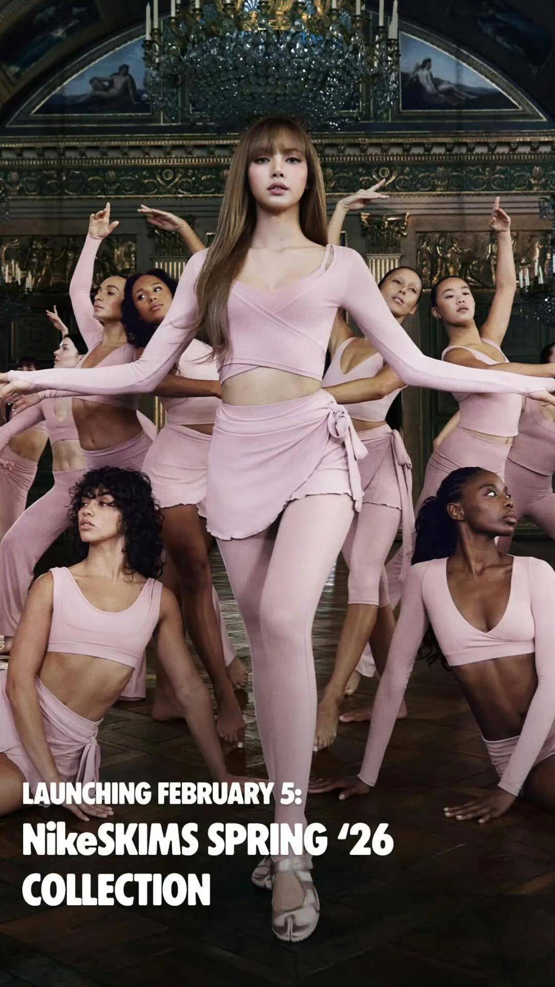 Lisa身穿Nike和Skims联名的芭蕾舞服,她自信的站在一群芭蕾舞演员中间,Lisa以Nike新代言人身份亮相。