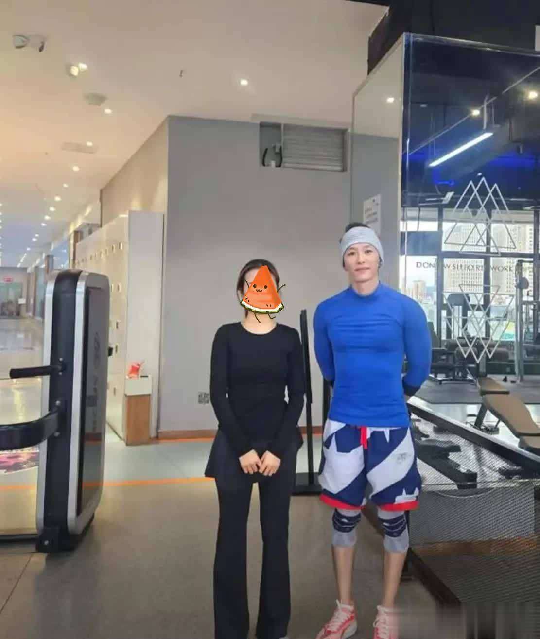最近,有网友在健身房偶遇了代旭,并将两人合影晒了出来。照片中的代旭,穿着一件蓝色高领紧身运动上衣,肌肉线条分明,展现出他平日里勤加锻炼的成果。下身则搭配了一条色彩斑斓的几何图案运动短裤🩳,配上一条灰色压缩裤,脚上蹬着一双亮眼的粉色『运动鞋』。最抢眼的则是那条灰色运动头带,让整体造型透露出一丝混搭风格。这样的『打扮』与剧中裴总的精致形象截然不同,给人一种随性却充满力量感的气息,粉丝们甚至笑称:一时间不知道该叫哥还是叫婶儿。