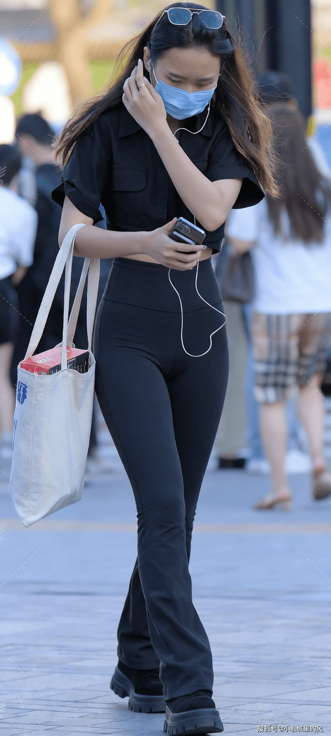 这套全黑『穿搭』把酷感与性感完美融合,是微胖女孩夏日出街的吸睛选择。 短款扭结设计的黑色衬衫是整套造型的亮点,翻领和口袋保留了衬衫的硬朗质感,下摆的扭结设计则巧妙露出一小截腰腹线条,在视觉上分割身材比例,弱化腰腹的圆润感,既显利落又不失小性感。 下装搭配一条高腰微喇瑜伽裤,高弹面料贴合腿部线条,高腰设计稳稳卡住腰线,瞬间拉长下半身比例。微喇裤型从大腿处逐渐放宽,完美修饰了大腿和小腿的线条,走动时裤脚轻晃,自带慵懒随性的氛围感。 搭配一双厚底黑鞋,进一步拉长腿部线条,浅米色帆布包则为全黑造型增添了柔和感,平衡了整体的酷感。白色耳机作为点缀,让造型更具活力。 全黑配色自带的利落感,让微胖身材在视觉上更显紧致。扭结衬衫的小性感与微喇裤的松弛感碰撞出独特魅力,没有刻意遮肉的紧绷感,反而用恰到好处的露肤和线条感,让身形看起来更舒展、更有活力。无论是通勤赶路还是约逛市集,都能让你在人群里自在又出挑,轻松穿出属于微胖女孩的专属辣妹范儿。