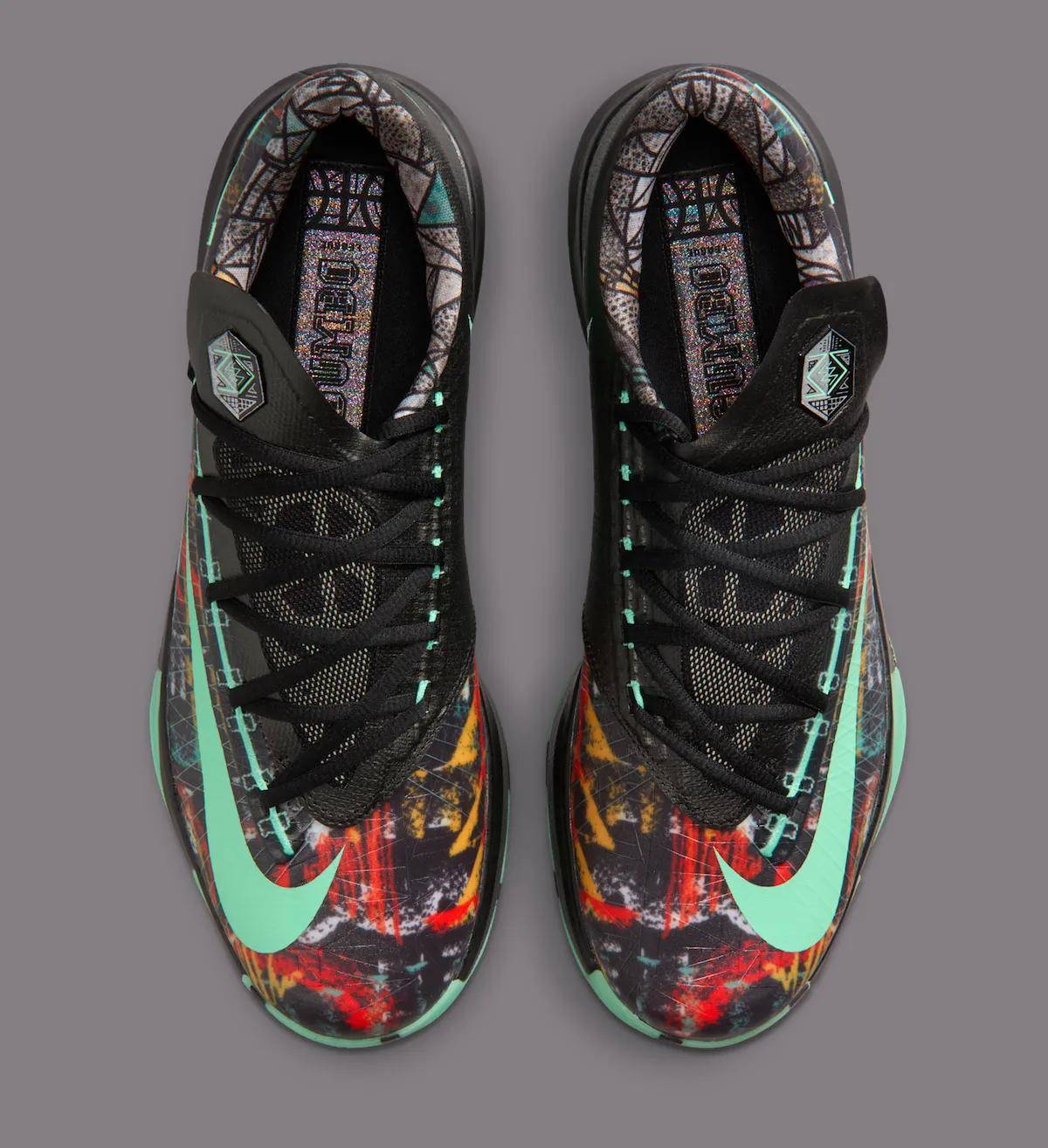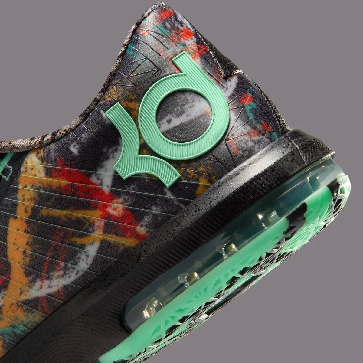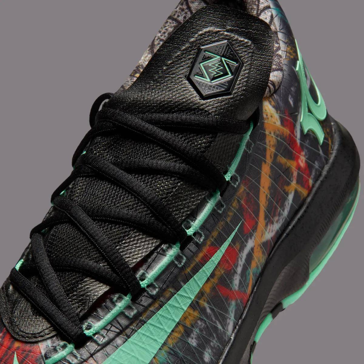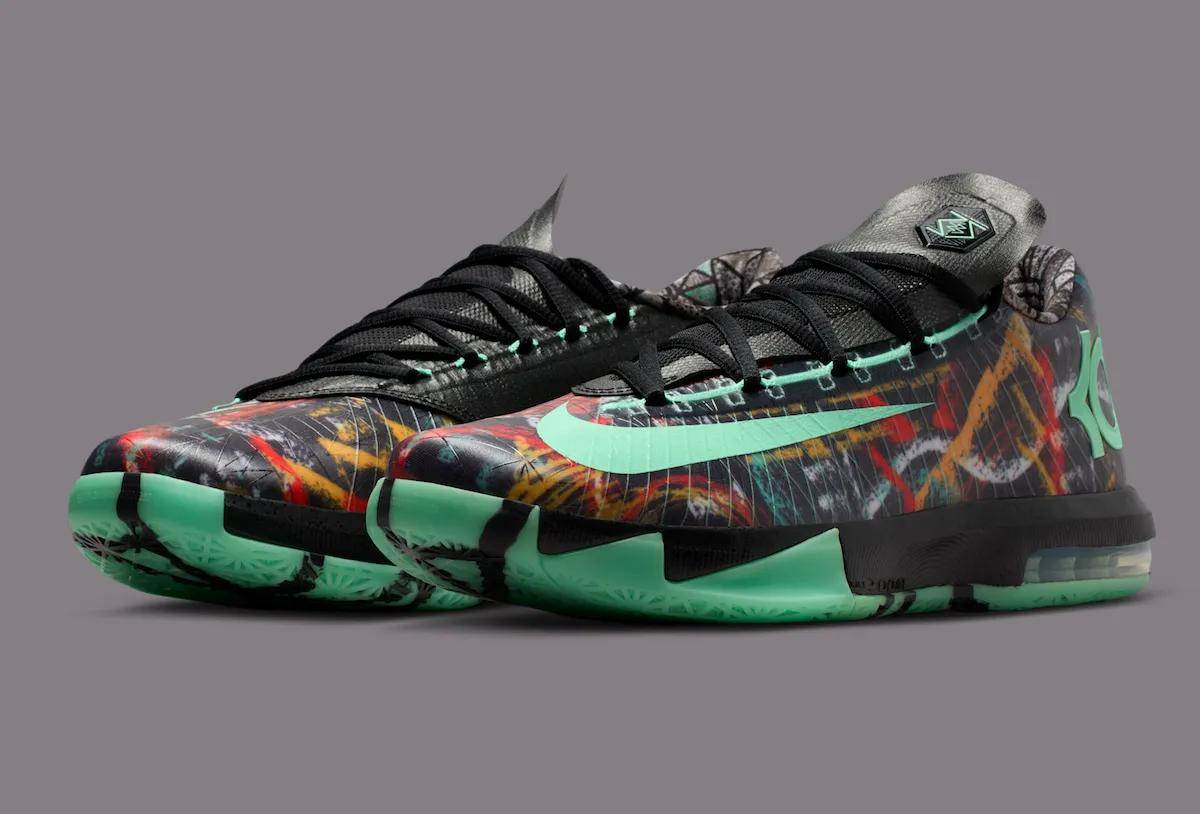 这款名为“Illusion”的球鞋由凯文·杜兰特在2014年新奥尔良NBA全『明星』️赛上穿着,是该品牌色彩缤纷的“NOLA Gumbo League”系列的一部分。鞋面采用抽象图案设计,灵感源自杜兰特难以捉摸的球风,搭配薄荷绿夜光外底,以及其他细节装饰,例如金属元素、优质覆面和鞋跟处的KD标志。