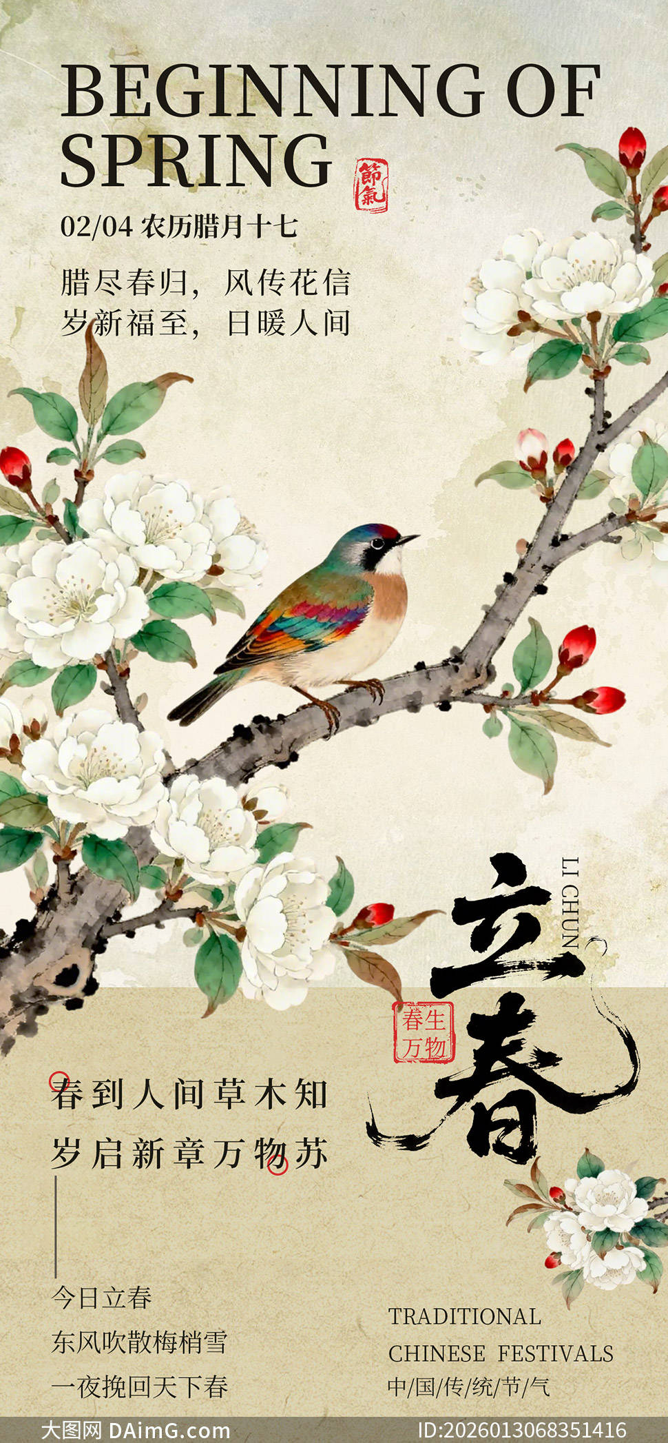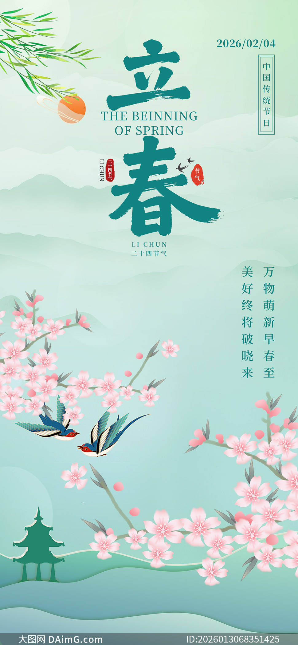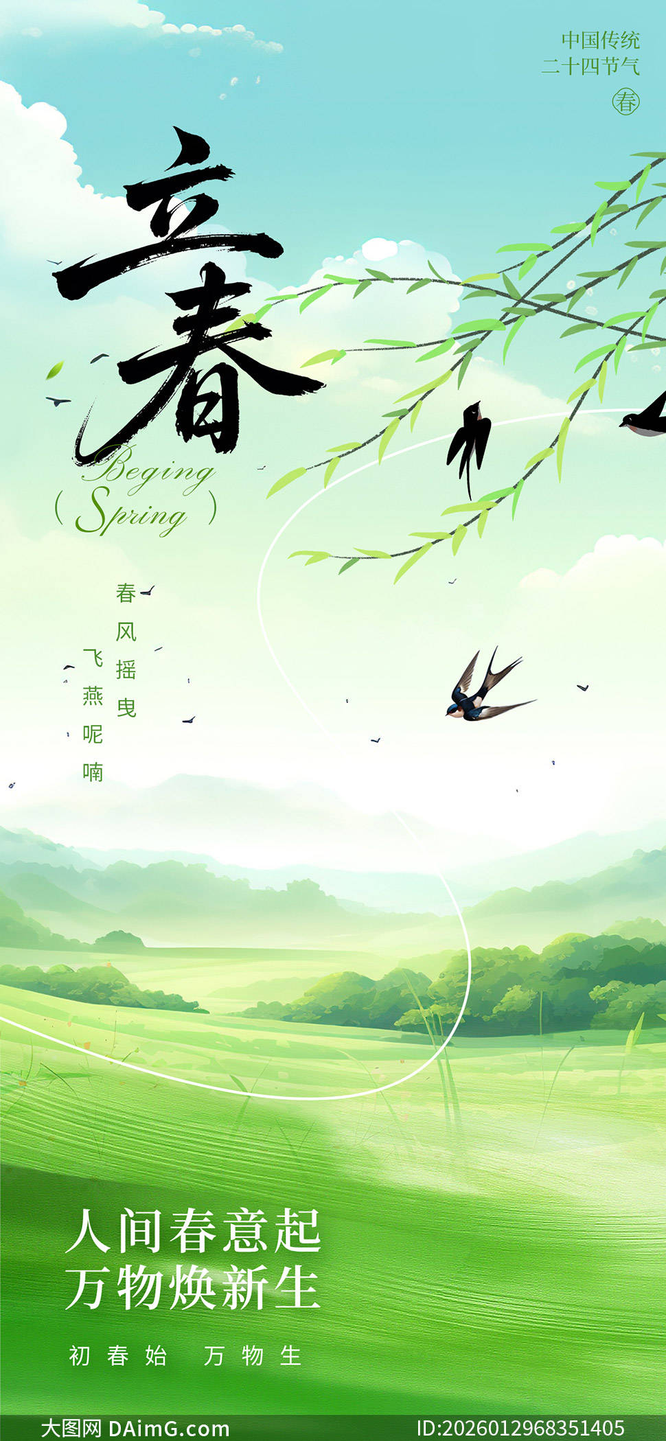 海报中,嫩绿的枝芽破土而出,象征着新生命的开始;绽放的花朵娇艳欲滴,寓意着春天的绚丽多彩;还有那展翅欲飞的鸟儿,传递出对自由与希望的向往。每一张海报都巧妙融合了传统与现代元素,既保留了立春的文化底蕴,又符合现代审美趋势。