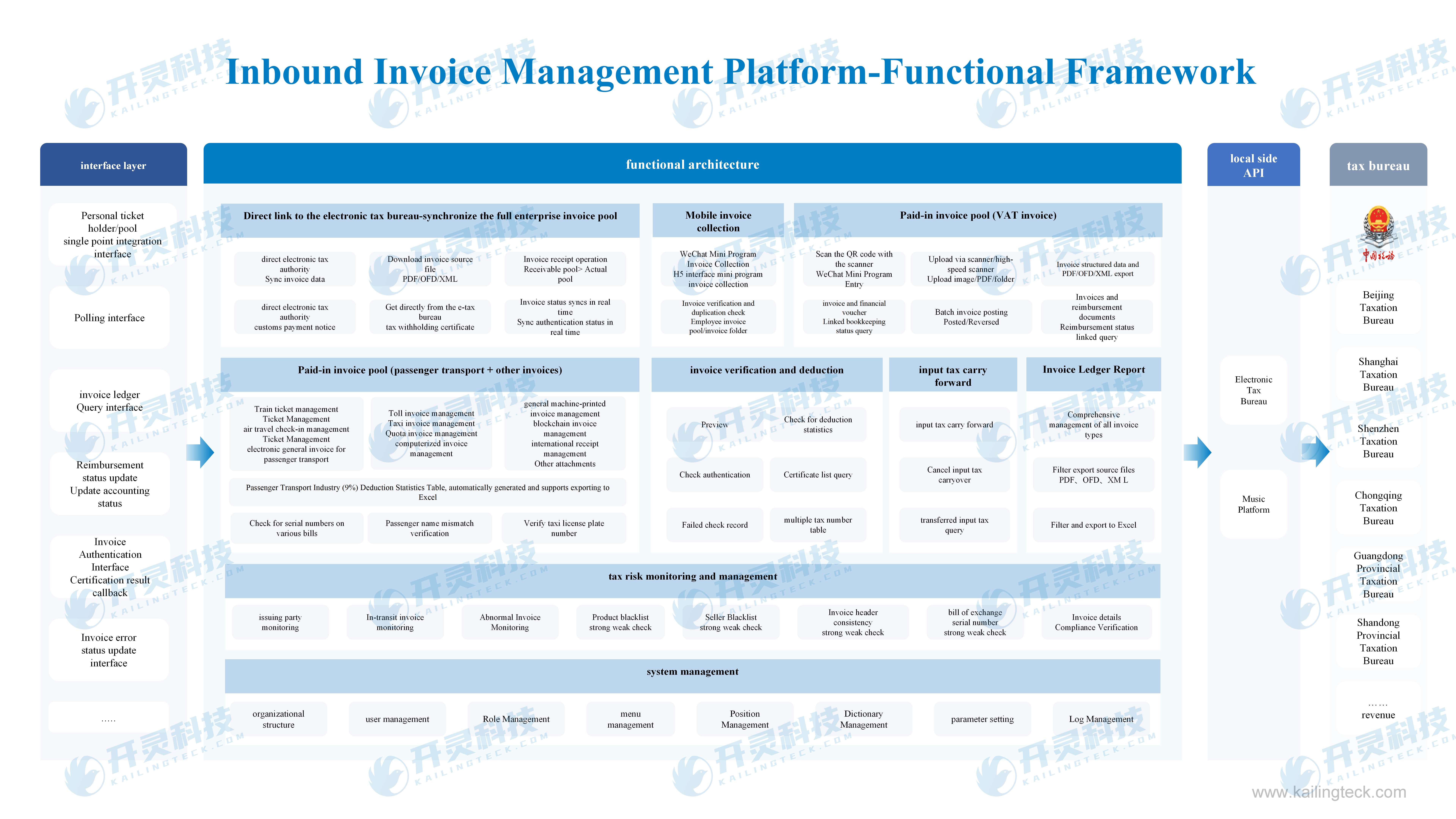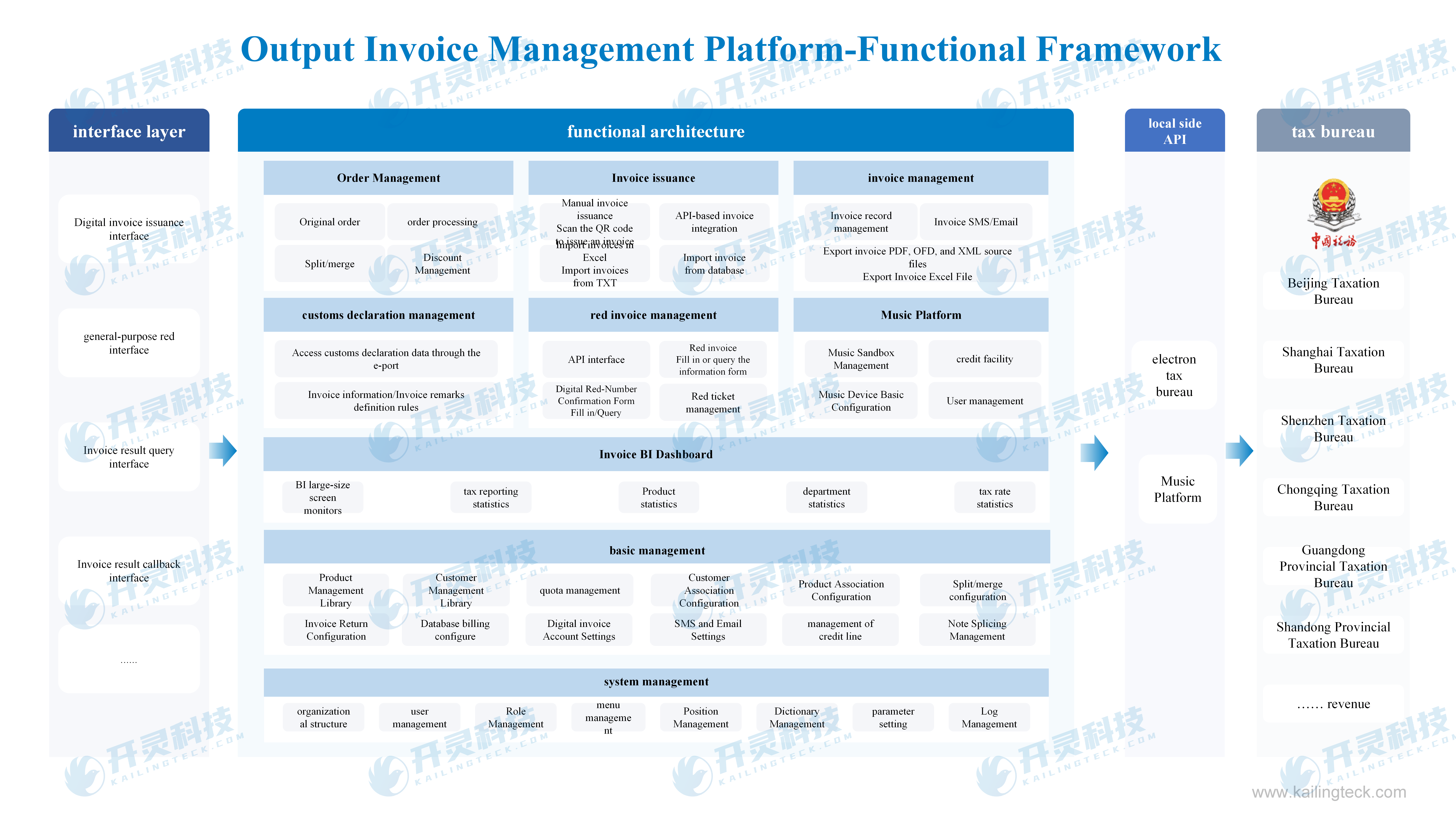Kailing Technology, as a comprehensive digital solutions provider for finance and taxation, delivers digital transformation products and operational services for financial and tax management to government agencies, institutions, and enterprises of all sizes. Our product portfolio includes: