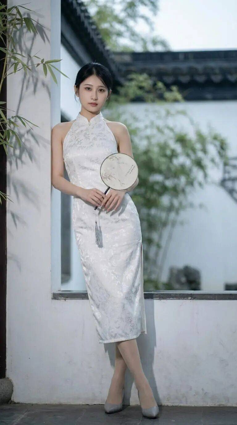 在江南风格的白墙灰瓦小院里拍旗袍,最容易陷入 “好看但没记忆点” 的困境。要么把人拍得和背景脱节,要么满是堆砌的元素,反而失了韵味。这组照片没有用花哨的技巧,只是在构图、姿态和光线的取舍上做了些 “反套路” 的选择,让人和景真正融在了一起。