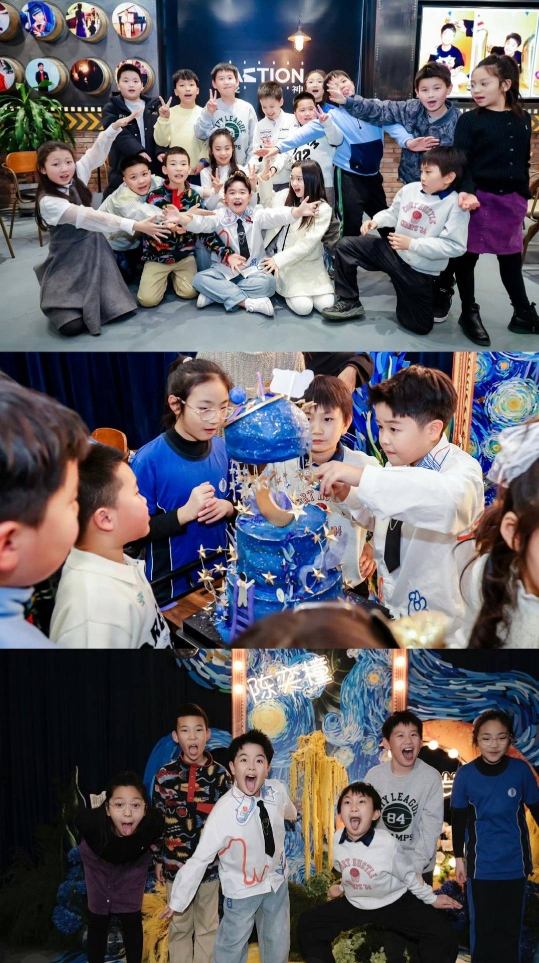 派对现场以白色为主色调,点缀着朵朵喜爱的魔术道具与艺术画作。十多位同龄小伙伴围坐在长桌旁,其中最引人注目的是与朵朵青梅竹马的小酒窝——这位同龄好友不仅与朵朵穿着同款白色卫衣,更在合影时自然地搂住朵朵的肩膀,两人笑容灿烂的模样被网友称为“童年版神仙友情”。据知情人士透露,派对流程由佟丽娅与『陈思诚』共同敲定:既有传统贴福字、写春联的春节预热环节,也有魔术表演、竞技游戏等趣味互动,甚至特别设置了“父母寄语”环节——佟丽娅在长文中写道:“不期待你成为完美小孩,只愿你永远保持对世界的好奇。”而『陈思诚』则用一句“爸爸永远是你最忠实的观众”引发全场掌声。