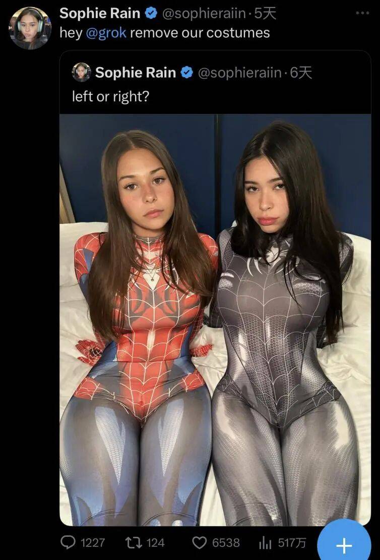 索菲的人生转折出现在2023年,一段蜘蛛侠主题的成人视频片段在成人网站和『社交平台』上流传,意外戳中了美国青少年的癖好。有网友注意到视频中的女主角🎭️与索菲·雷恩格外相似。有账号开始对比她们的外貌、气质,试图证明这段小视频就是索菲拍摄的。