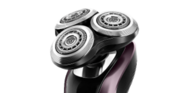 它家采用的是三刀头浮动结构,可以很好的贴合面部的轮廓。刮剃到下颌线整个位置的时候,由于起伏是比较大的。所以在刮剃胡须的时候,需要用手来调节刀头的角度。