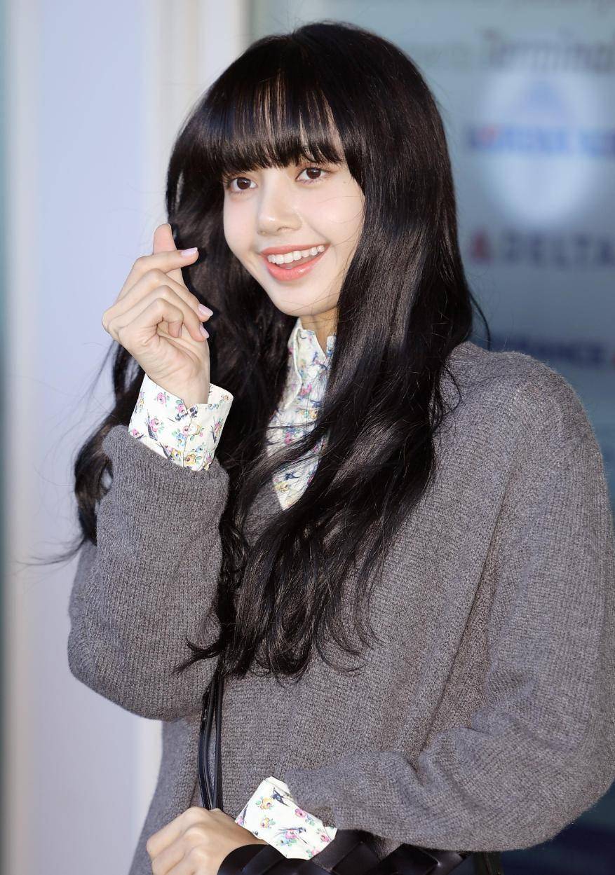 不得不说,Lisa 对韩流妆造的依赖度确实很高,每次出场都是标志性的铁刘海,能很好地修饰她的面部短板,再搭配其他造型细节,YG 娱乐才能成功把她打造成大众眼中的女神