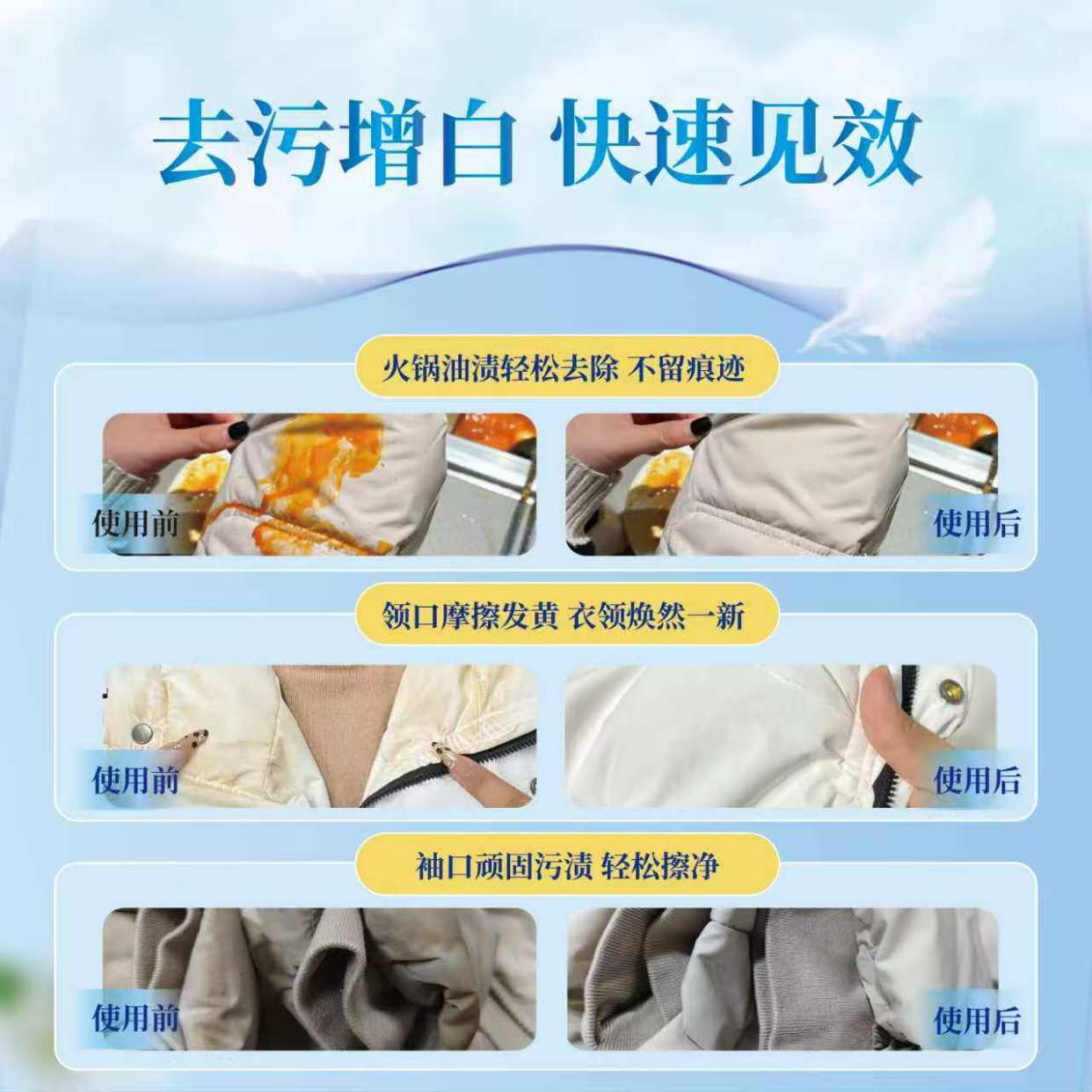 选对清洁剂,还要看适用场景的适配度。好的羽绒服清洁剂不该“挑面料”,生物酶配方就做到了这一点——无论是各类羽绒服、『羽绒马甲』,还是棉衣、毛料大衣、丝绸等娇贵面料,都能放心使用,尤其针对领口、袖口、前襟等易脏部位,局部清洁更高效,不用整件清洗,省时又省力。但要注意,皮革、橡胶及严重褪色的面料不适用,选择时需留意面料说明。