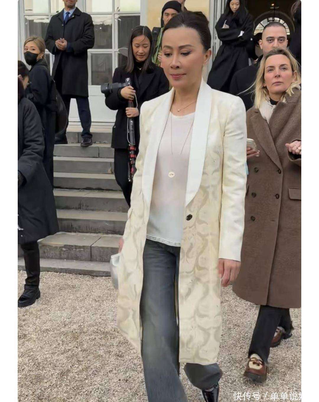 相比之下,刘嘉玲的表现简直就是松弛感的代名词,她的『穿搭』简约至极:一条牛仔裤👖搭配白上衣,外面披上一件白色暗纹外套🧥,毫无华丽装饰,但从她身上散发出来的气场却是让人无法忽视的强大。与品牌总监见面时,她直接给对方一个热烈的拥抱,俩人像是多年的老友,亲密自然,丝毫没有做作和刻意的成分。这种不拘一格的松弛气场,和那些小花们的紧张、拘谨形成了鲜明的对比。她不需要通过弯腰讨好,也不需要费力刷存在感,只是站在那里,便自带大佬气场。这份从容不迫,正是刘嘉玲数十年积累的江湖地位所带来的底气,是年轻演员们再怎么努力也学不来的气度。