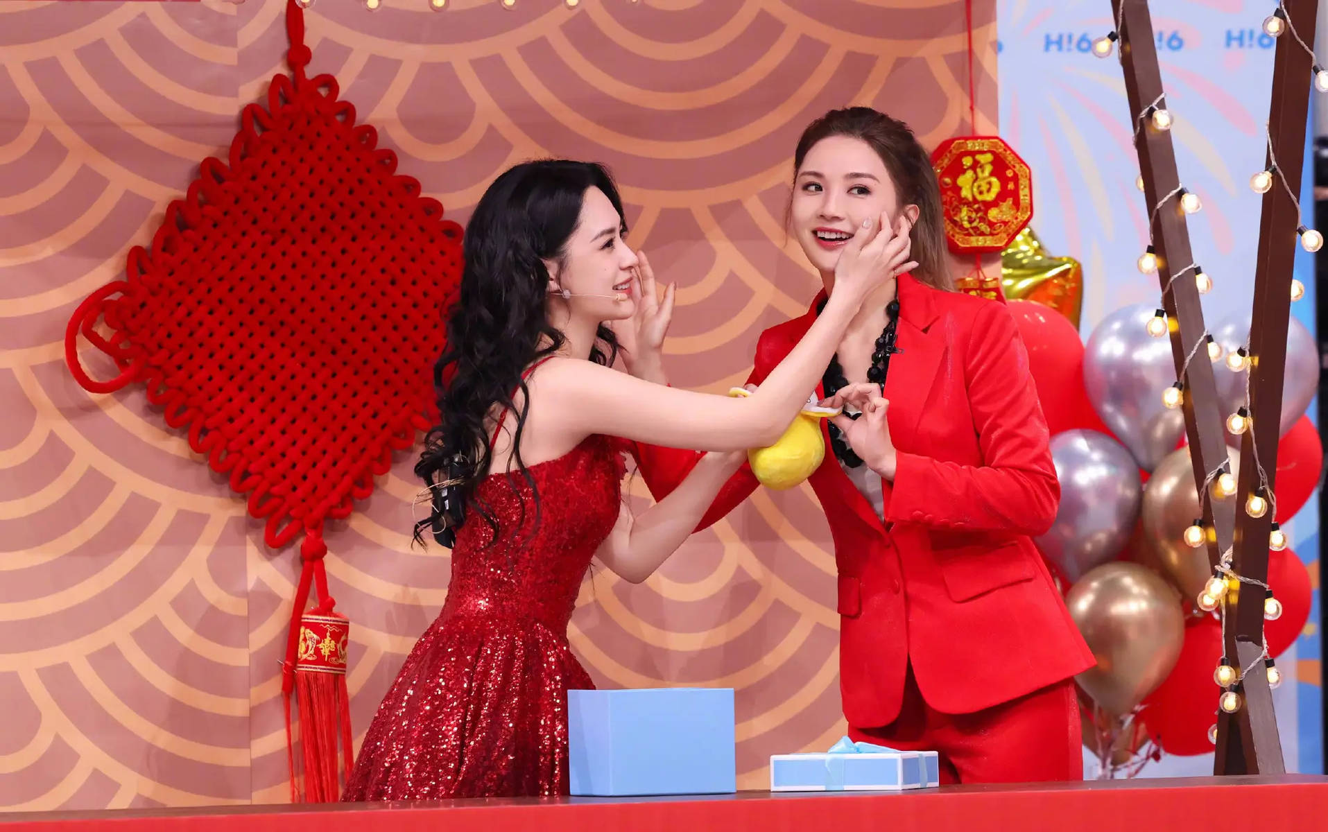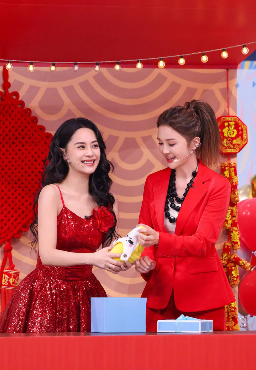 两人的年画造型,藏着最地道的年味仪式感。没有繁复的修饰,一身亮眼红装衬得眉眼愈发灵动,领口袖口的吉祥纹样点缀其间,既有传统年画的古朴喜庆,又藏着少女般的娇俏。阿Sa梳着利落的发髻,眉眼弯弯,笑起来自带元气buff,像从年画里走出来的福娃,鲜活又讨喜;阿娇眉眼温婉,气质软糯,眉眼间的柔和与红装的喜庆相融,多了几分温润的烟火气。不用刻意摆拍,一个对视、一个浅笑,或是并肩比出俏皮手势,都透着旁人学不来的默契,仿佛还是当年初遇时,那份并肩同行的鲜活模样。