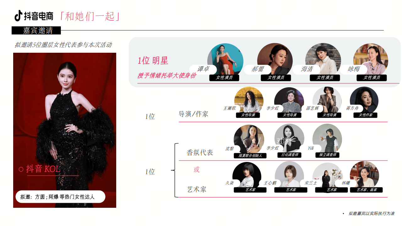本次企划拥有多重核心亮点,在媒体合作方面,携手时尚OTRENDS、Traveler等时尚媒体,并依托时尚集团《愈见你,真好》情绪疗愈及美好生活方式探索IP,为品牌构建有温度的情感沟通场。嘉宾阵容涵盖多领域女性♀️代表,拟邀请方圆、阿爆等『抖音』热门KOL,谭卓、『郝蕾』等女性♀️演员,李少红、邵艺辉等女性♀️导演/作家,观夏联合创始人等『香氛』领域代表以及宋三土等艺术家,部分嘉宾将被授予“情绪托举大使”身份,多元视角助力活动影响力。