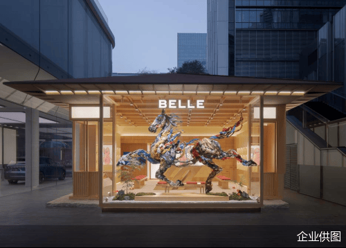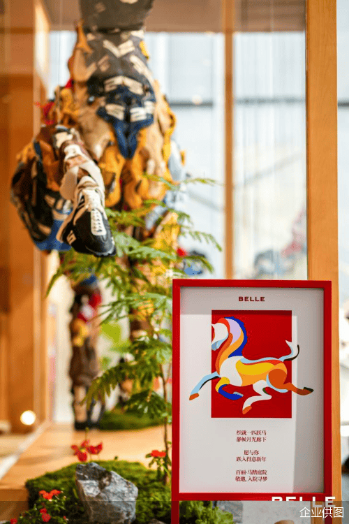 这个首次亮相的“马踏庭院”新年快闪空间,如同一个精心设计的剧场。舞台中央是艺术家席敏创作的艺术品,四周则是由产品、场景和消费行为构成的真实商业世界。从艺术品到商品,从文化表达到消费行为,距离被有意拉近——这不仅是节日营销,更标志着百丽(BELLE)为深化其“时尚休闲”赛道布局,选择在此具风向标意义的商业空间进行集中呈现,其升级意图不言而喻。