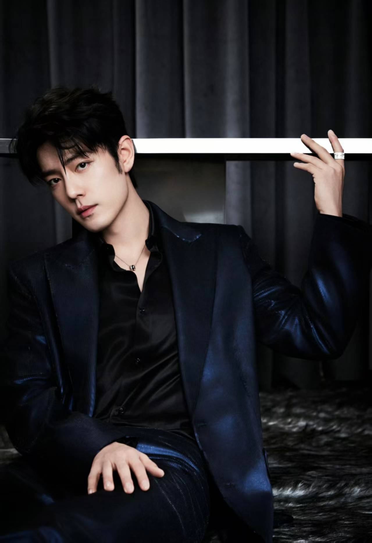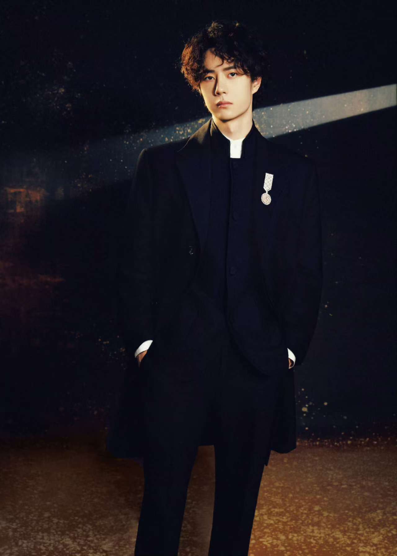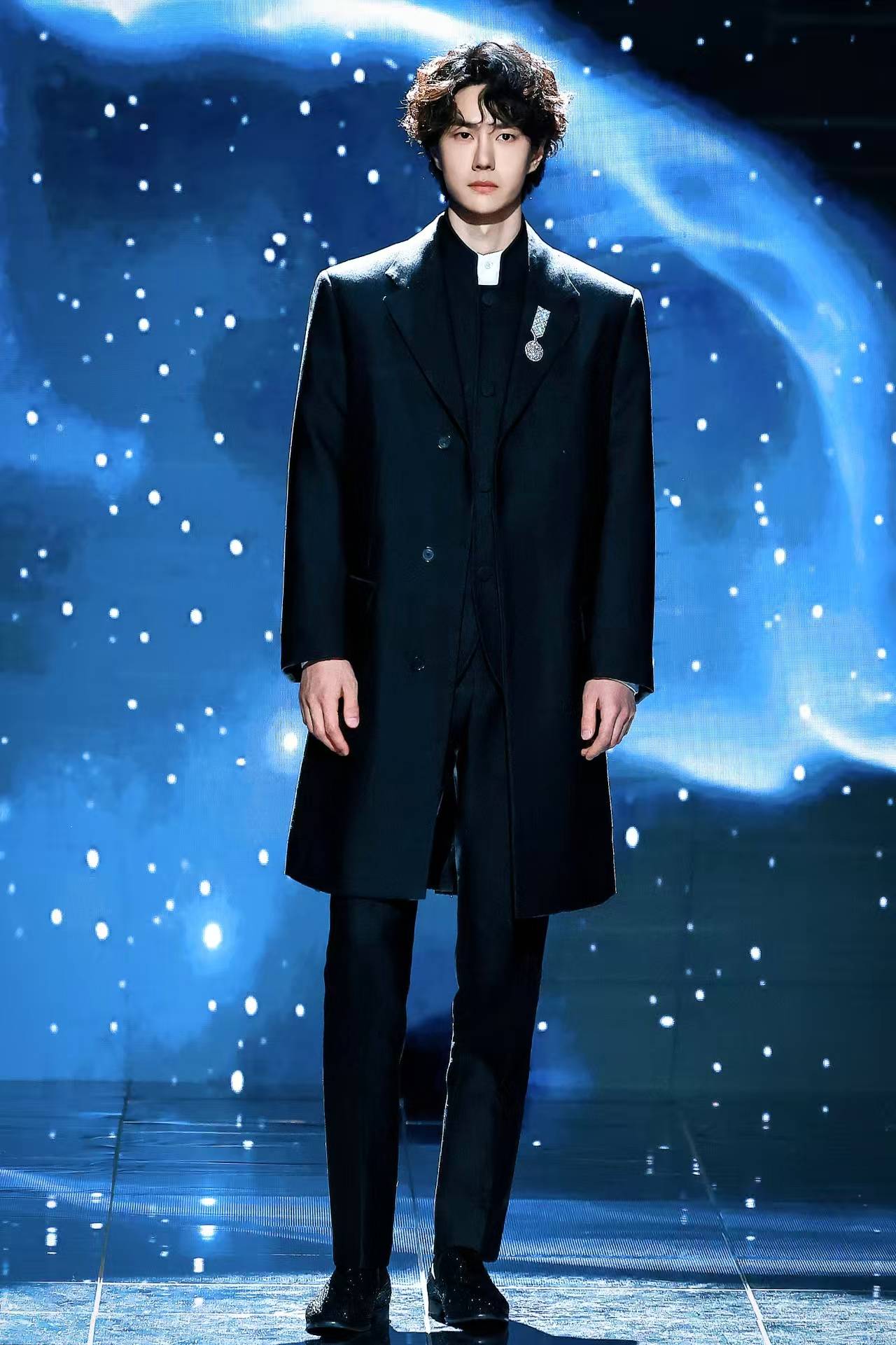 『王一博』选择的墨色立领中山装,修身剪裁突出他挺拔的身形,仿佛是为他量身定制一般。胸前佩戴的香奈儿LE PARIS RUSSE DE CHANEL系列山茶花胸针,以“碎金沉入墨色”的细节形成视觉焦点,传统服饰的庄重感与『奢侈品』珠宝的现代感碰撞出独特火花❇️。微卷羊毛发型打破常规,营造出慵懒松弛的氛围,被时尚媒体誉为“年轻教父风范”。