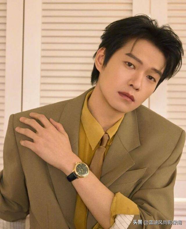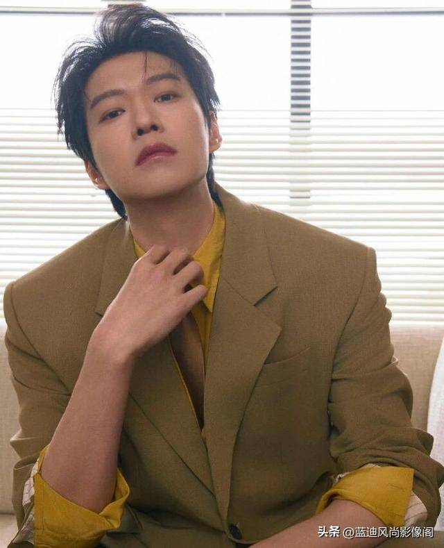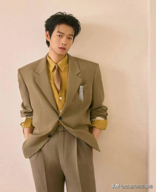 发型是慵懒的微卷短发,发丝带着自然的蓬松感,侧分的设计巧妙修饰脸型,部分碎发自然垂落,打破了正装的刻板拘谨,与复古西装的调性完美契合,潇洒又随性。