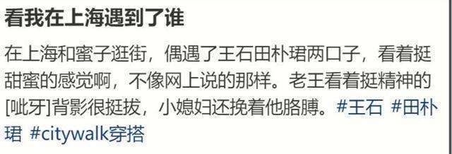 近日,一位网友在上海街头偶遇了王石与田朴珺夫妇,拍下了他们并肩同行的温馨瞬间。从背影看,这对夫妻的默契与甜蜜仿佛无法掩饰。田朴珺挽着丈夫王石的胳膊,两人步伐一致,流露出一种天然的和谐美感。