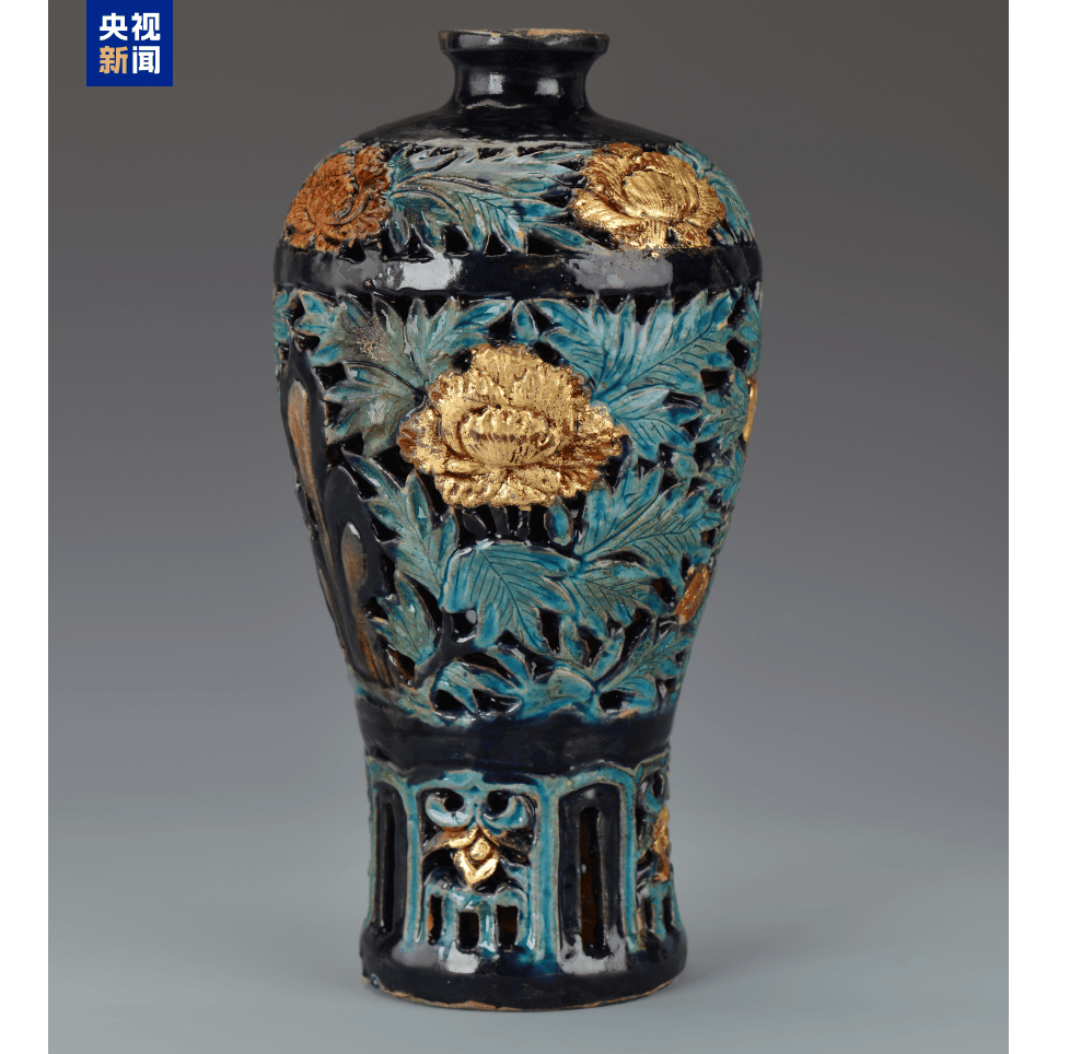 △同批出水的珐华贴金镂空应龙纹梅瓶正在北京大运河博物馆“出差”