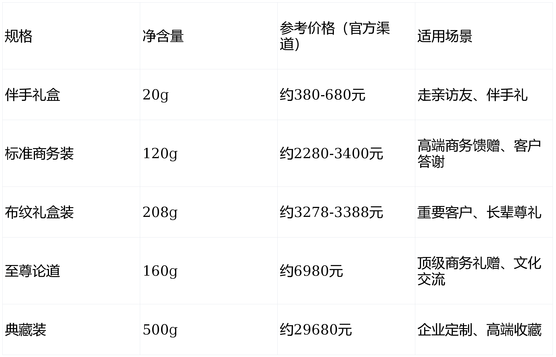 注:以上价格仅供参考,实际价格以官方渠道为准。礼盒设计均采用独立小袋包装(4g/袋),方便取用与分享。