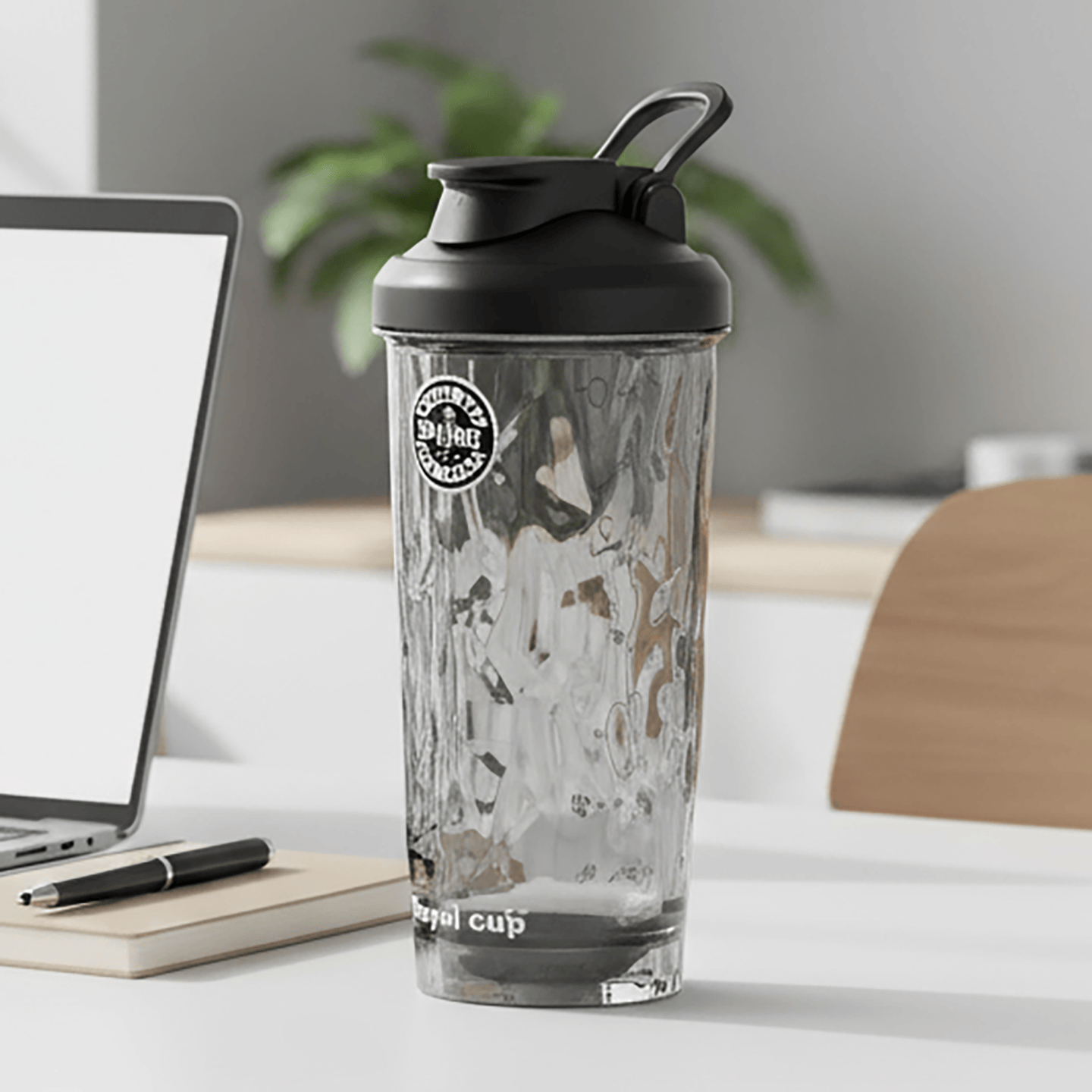 RoyalCup 的设计哲学平衡了两者。例如 Gen 1 钻石杯,通过钻石切面增加透明杯身的视觉丰富度,而不牺牲观察功能。Gen 5 蛋白动力杯则利用不透明的金属底座提升耐用度,杯身依然保持透明。