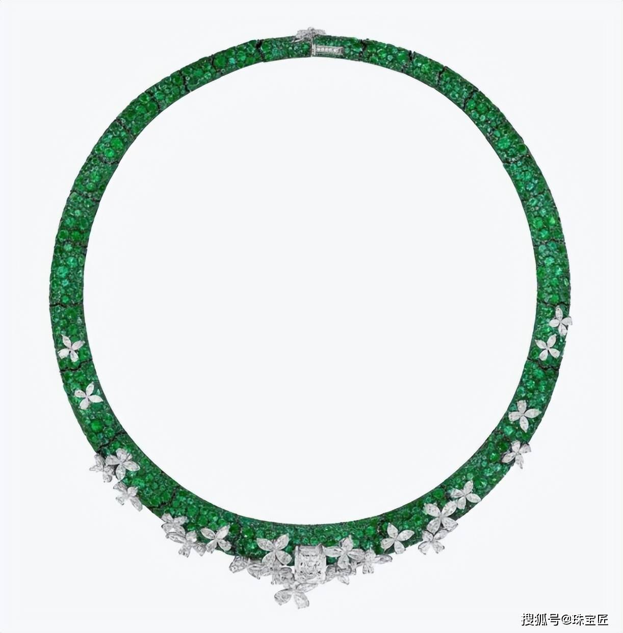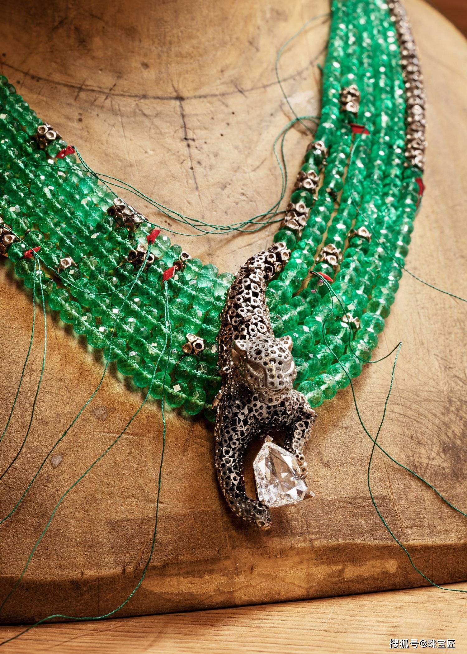 猎豹蠢蠢欲试的看着那颗重达10.1克拉的赞比亚祖母绿,是整条项链最大的亮点,独特的糖包山设计,吸睛又独特。