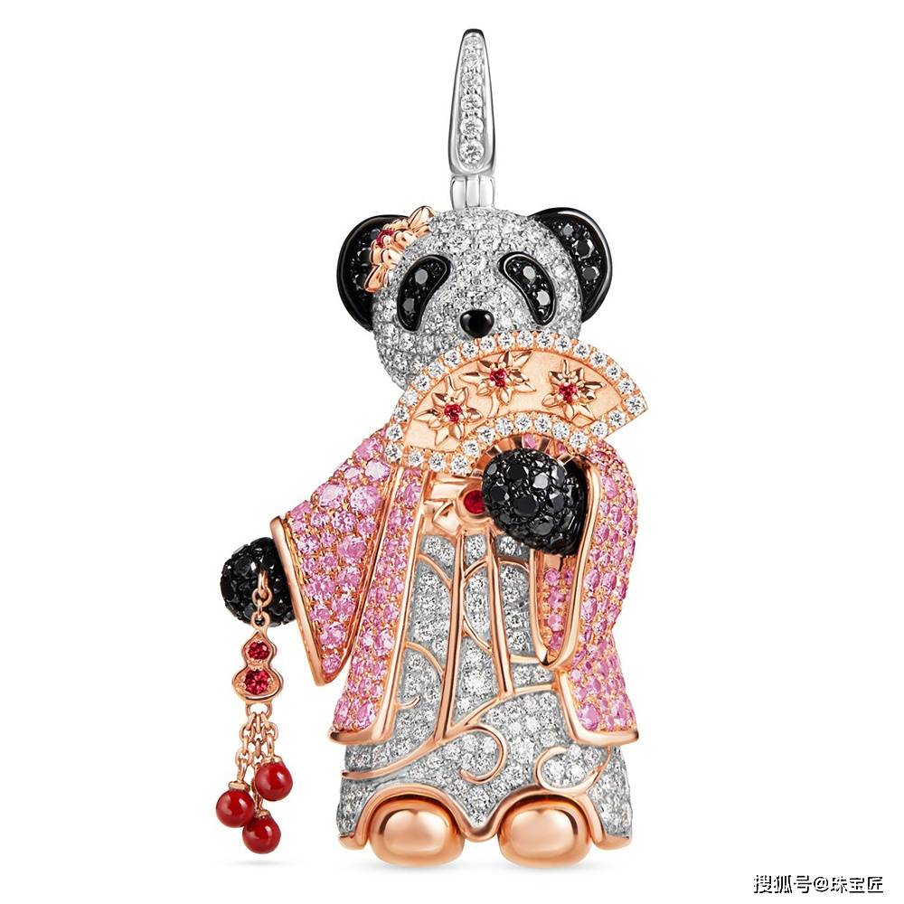 这一系列将蛇与熊猫元素融合,用钻石、黑钻、红宝石镶嵌成一款有“黑眼圈”的灵蛇形象,虽然,看着挺可爱的,但总感觉有些怪异~