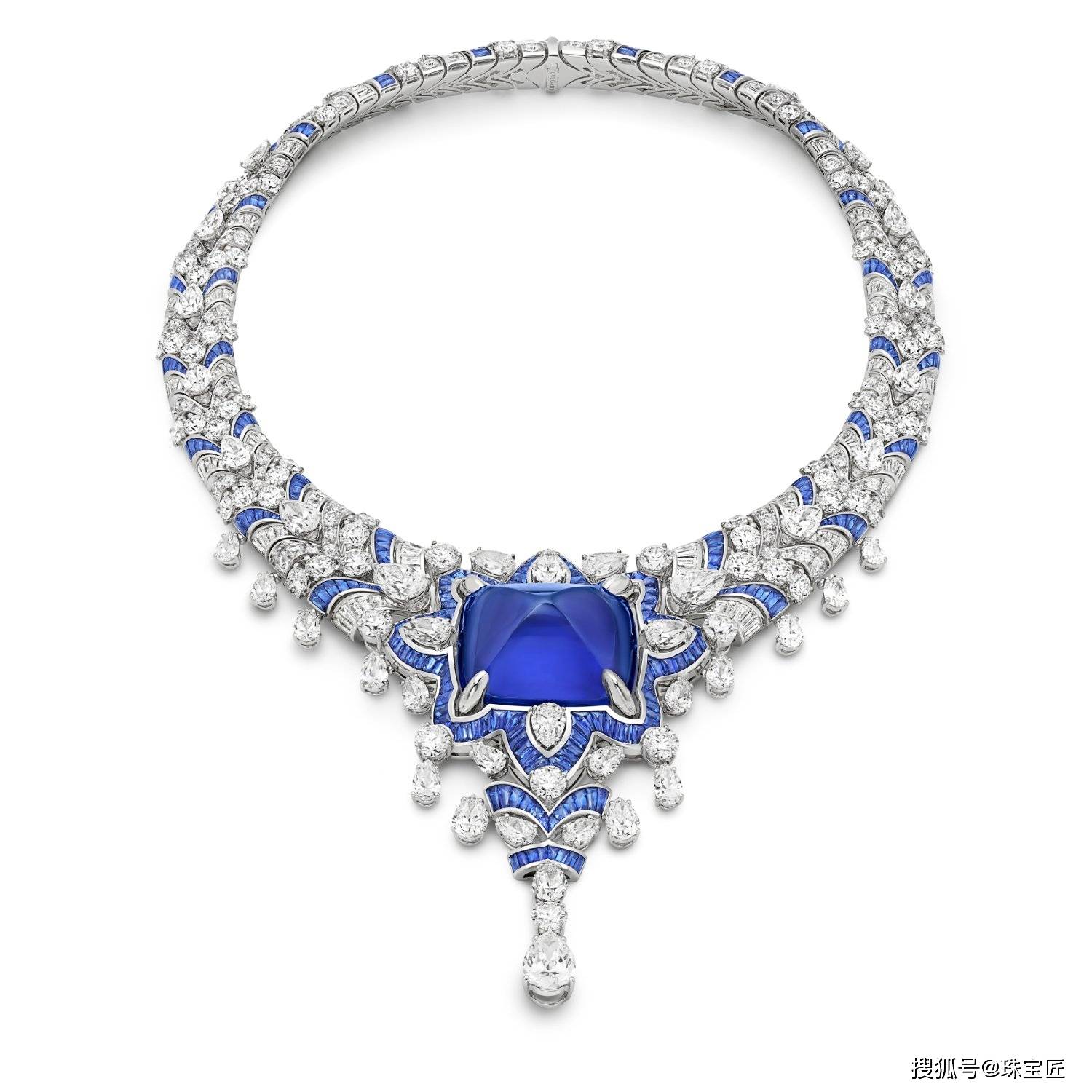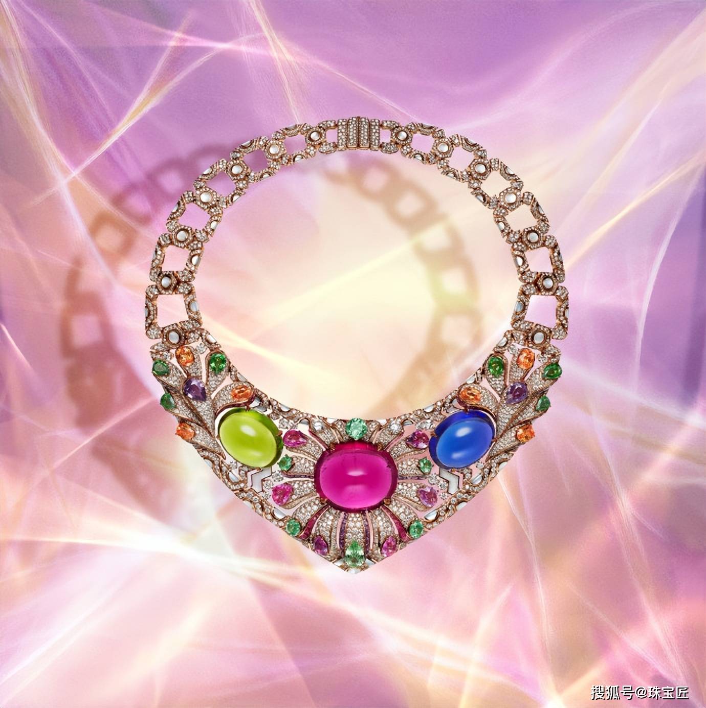 在镶嵌上,除了点缀123.35克拉的斯里兰卡糖面切割蓝宝石、131.21ct塔吉克斯坦产地枕形尖晶石等大尺寸稀有巨宝外,还通过定制切割与创新铺排,将彩宝镶嵌工艺提升至绘画艺术层面,再度巩固了宝格丽作为彩宝大师的权威地位。