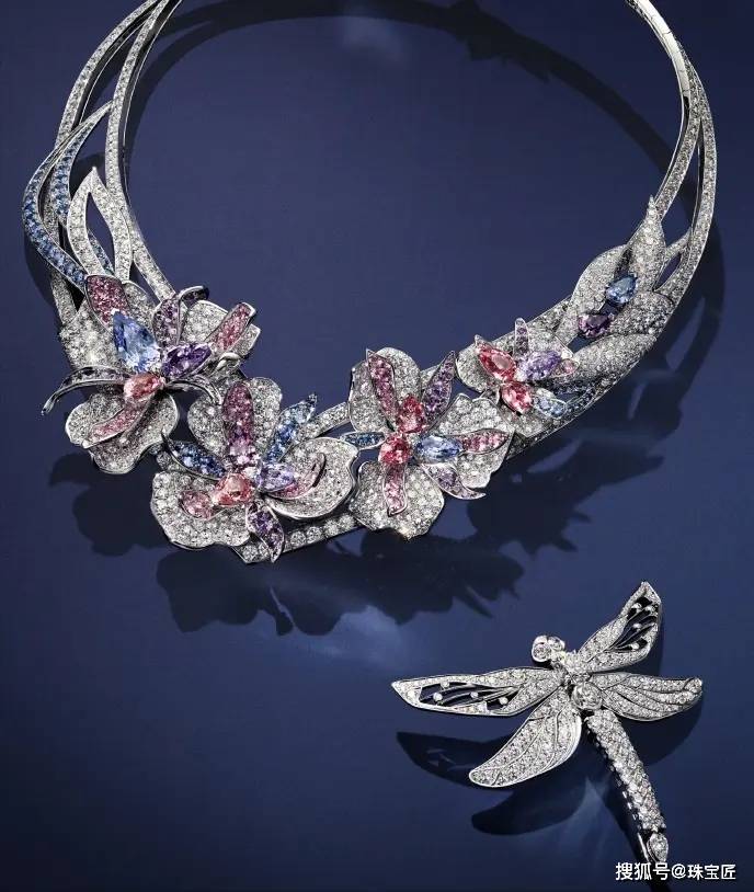 “重生”篇章则通过玉兰与鸢尾诉说新生,蜻蜓与小鸟的灵动点缀、越南尖晶石的绚烂色彩,赋予珠宝佩戴时的叙事诗意。