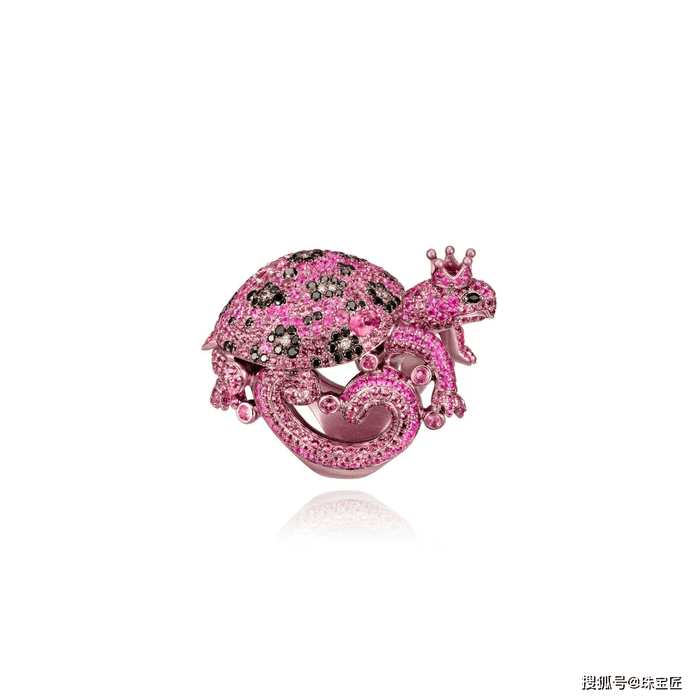在这里,每一种生灵都是由粉色蓝宝石、黑钻与粉色尖晶石镶嵌,虽然用材奢华、色彩统一,却在视觉上呈现出单调的堆砌感,看着有些说不出的惊悚感~
