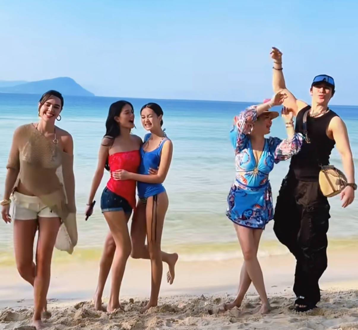 大女儿Yasmine是比利时生的,高鼻梁卷发,站在最边上。二女儿Jaden和小女儿考拉是双胞胎,但一个爱跳女团舞,一个天天抱怨数学题难。她们穿的不是同款,也不是“统一『穿搭』”,就是各穿各的,挂脖、蓝连体、红抹胸,不打架也不抢镜。『钟丽缇』那件V领泳衣挺普通,布料厚,没露腰,但你能看出来她是自己选的,不是为了谁点赞。