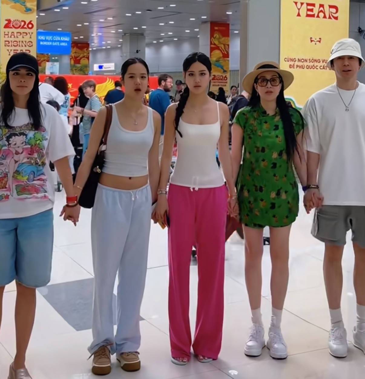 张伦硕那次蹲着,不是被拍矮了,是主动蹲下去——他背后站着『钟丽缇』的妈妈,那天刚好过生日,穿一身红。他蹲那儿,手还搭在考拉肩上,胸肌线条明显,但没人说“显摆”,因为下一秒他正帮Jaden擦『防晒霜』,动作很熟。他们没拍婚纱照似的对视,也没硬凑“恩爱”,就是把包背好、把妈扶稳、把女儿手机拿过来调角度。