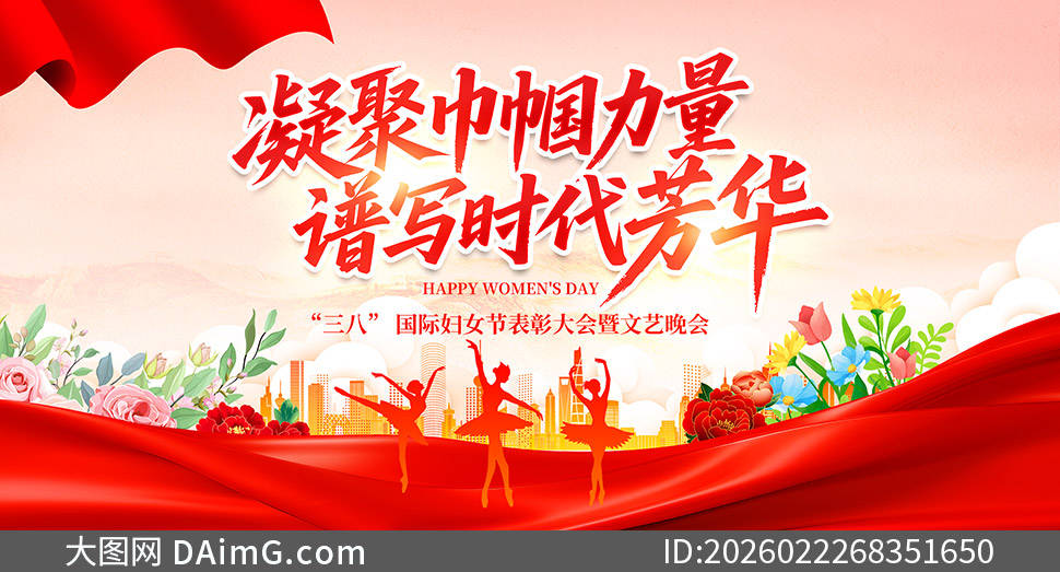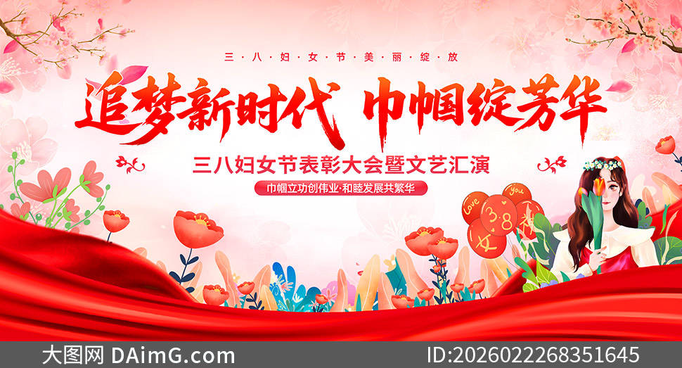 今天来给大家分享一组专为 38 妇女节文艺晚会打造的舞台背景展板。