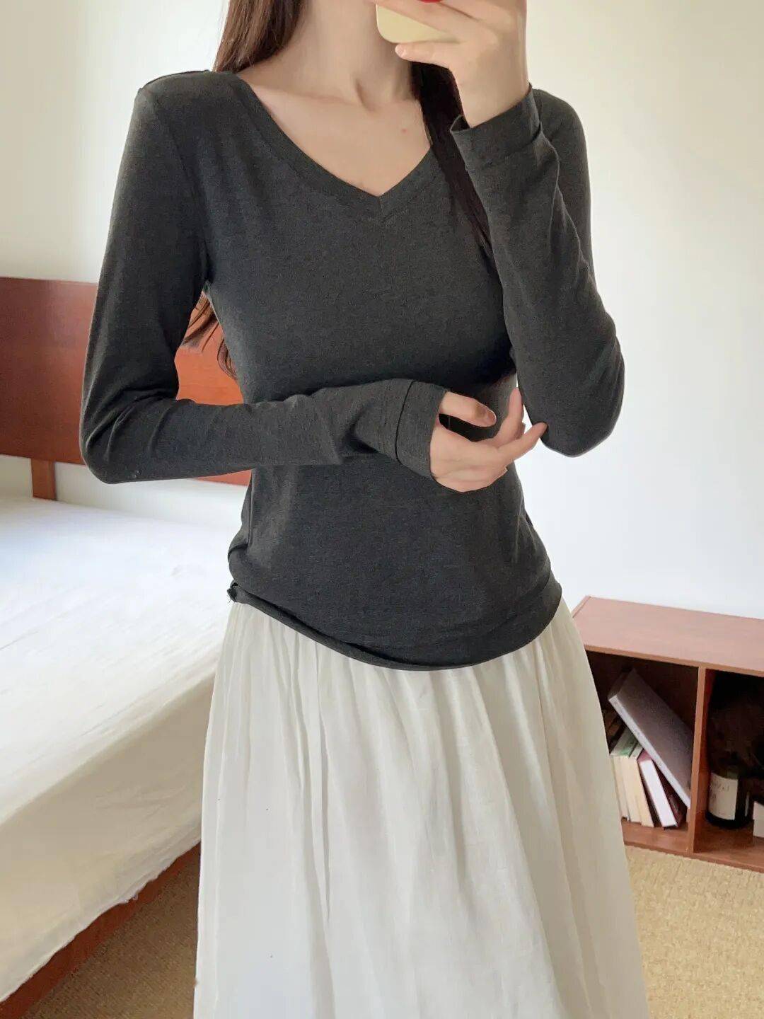 除了舒适亲肤、超显胸型,这件的深V设计也太深得我心~穿各种深领口的衣服都用担心会露出内衣边边。