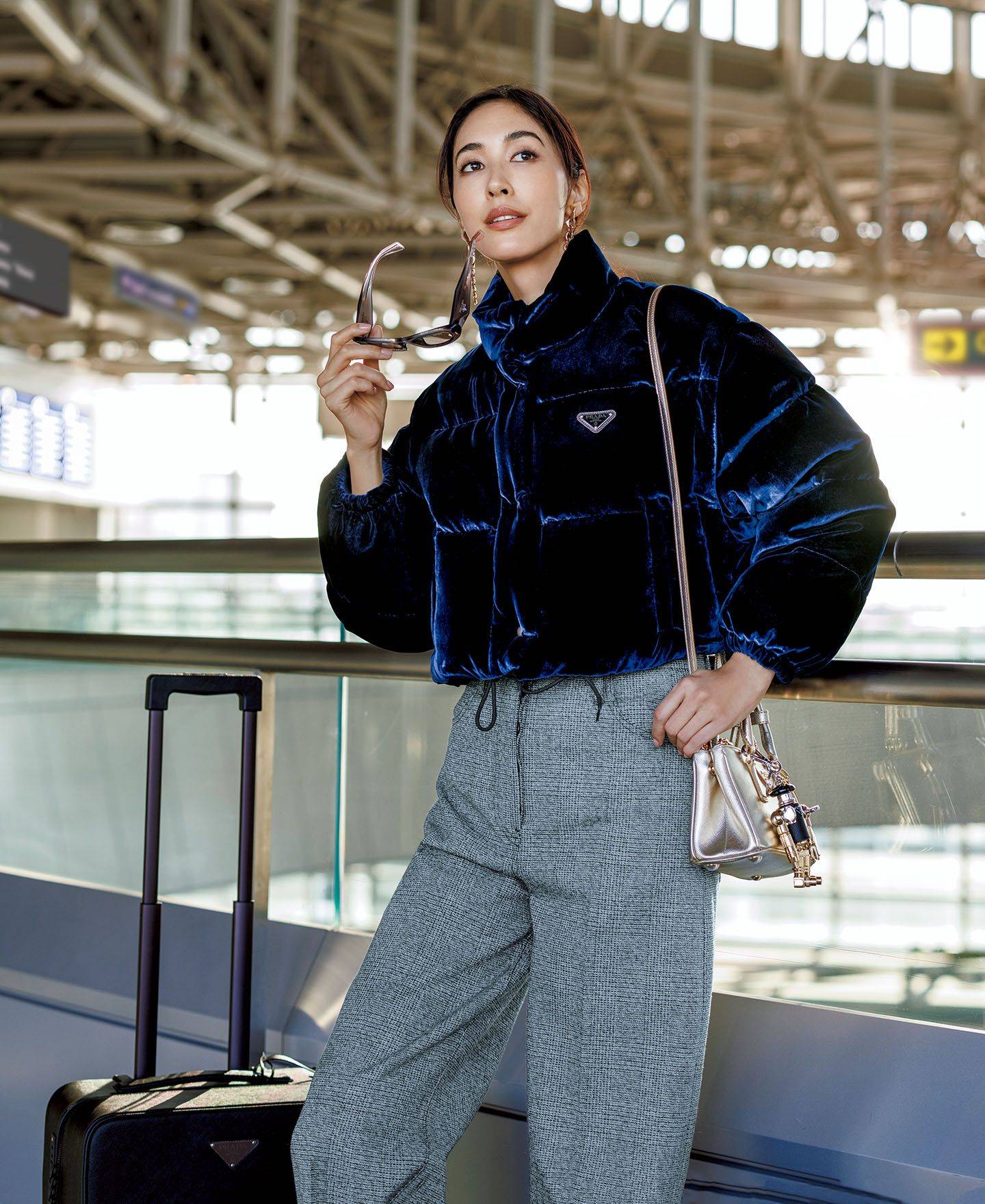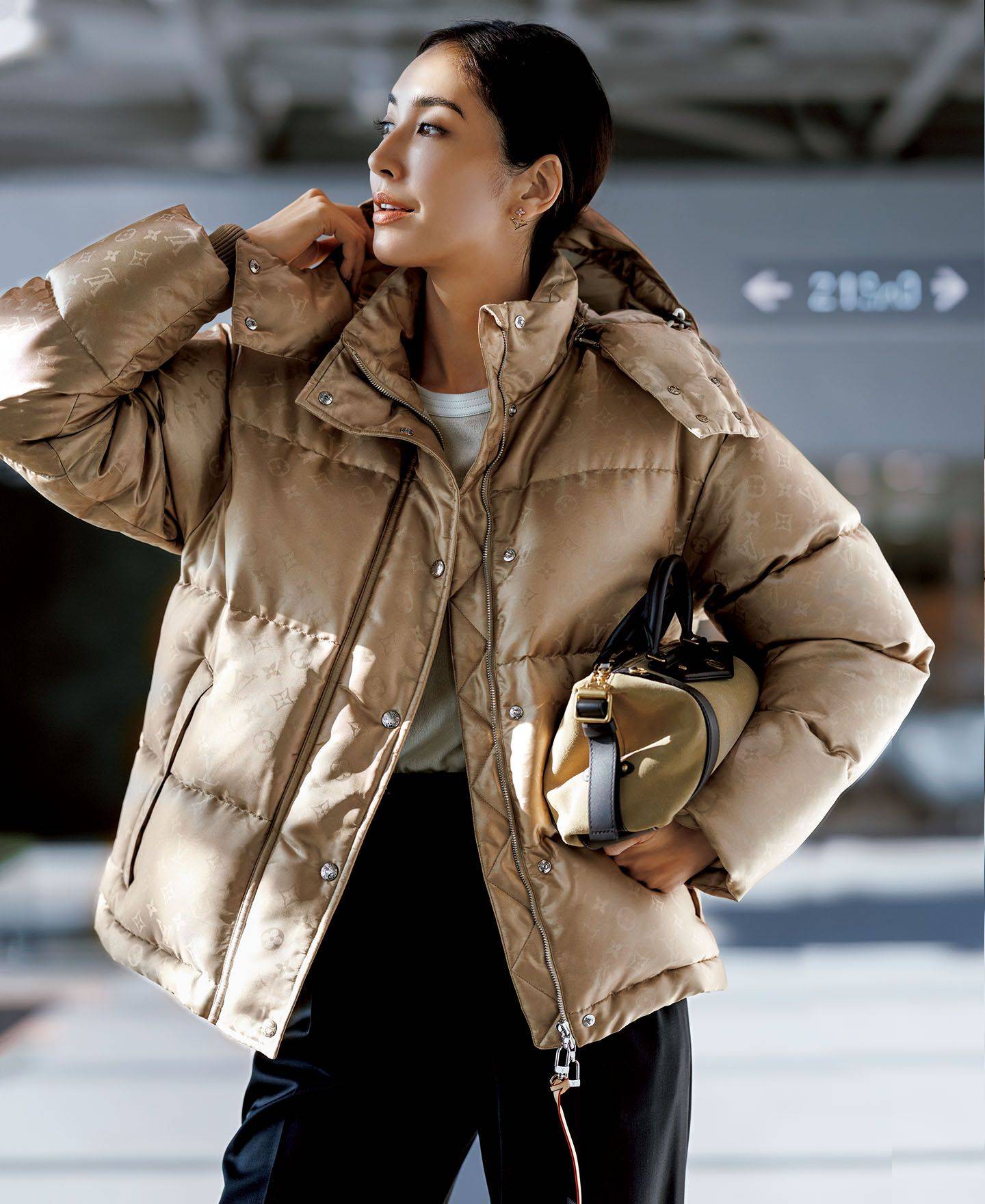 在机场、酒店大堂,这件黑色塔夫绸羽绒飞行员夹克散发着压倒性的华丽存在感。饱满的管状填充领口与女性♀️化的柔和线条,为黑色羽绒服注入了独一无二的时尚感。