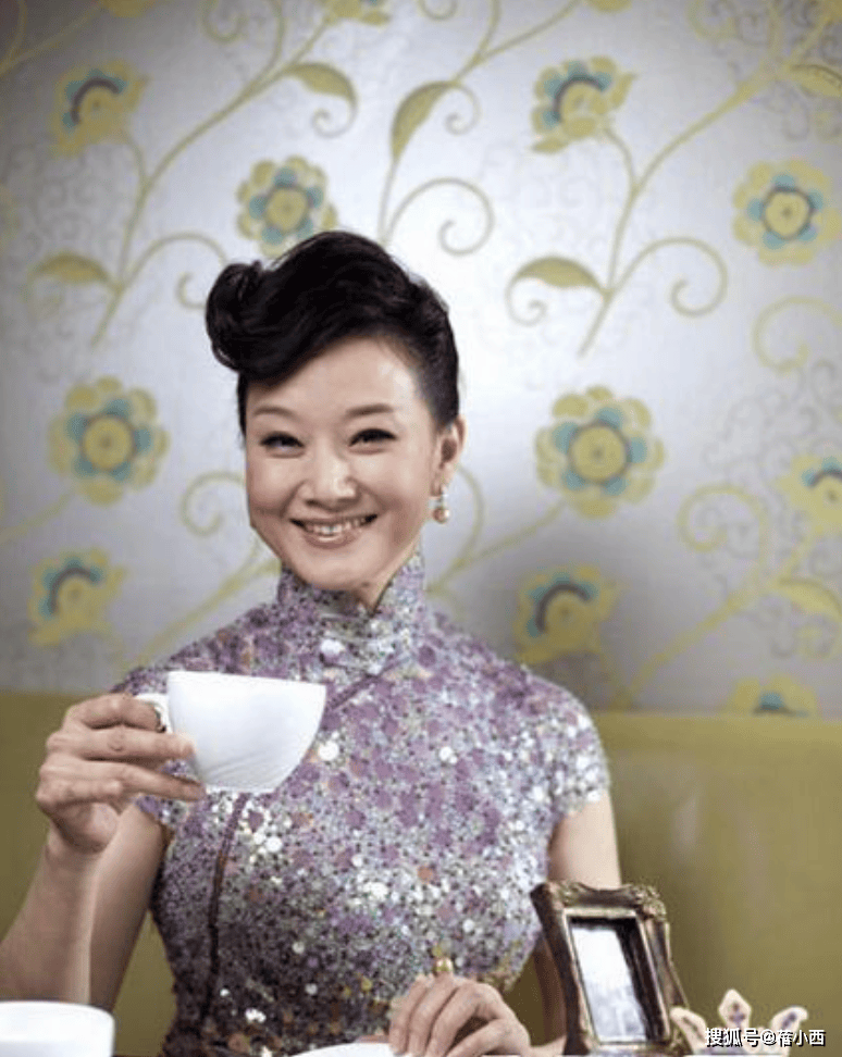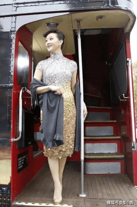 她这身亮片旗袍选择的特别时髦,改良版型告别了老气刻板,经典立领+精致盘扣依旧保留了中式韵味,无袖剪裁则能够露出纤细手臂,看起来利落又轻盈。旗袍上面的渐变亮片更是自带柔光滤镜,完美的勾勒出她的紧致腰身,完全看不出岁月痕迹,把女性♀️的柔美与气场平衡得恰到好处。