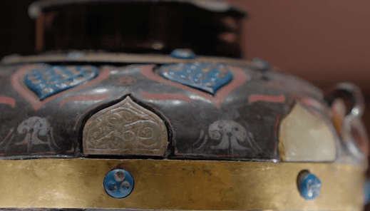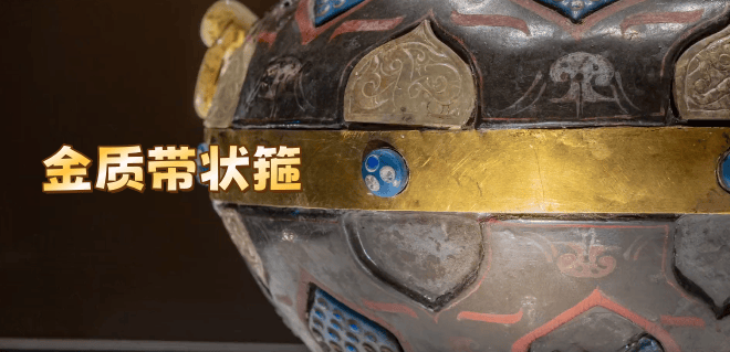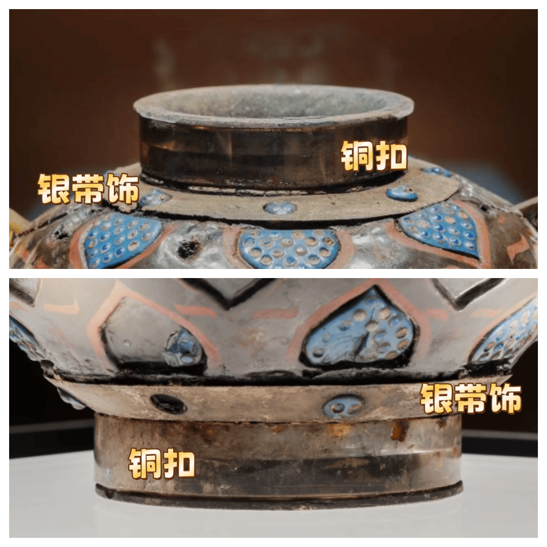 分别镶嵌有覆、仰式桃形蓝料片饰