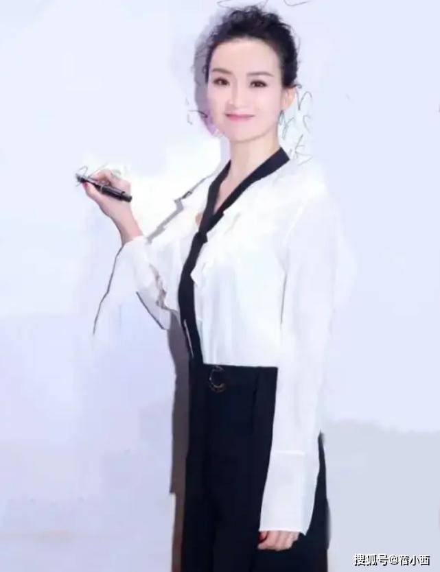 上半身,她挑选了一件有设计感的白色衬衫,摒弃了传统衬衫的刻板感,领口处加入了黑色细长飘带设计,瞬间成为点睛之笔。飘带自然垂落,增加了造型的灵动性,打破了纯色衬衫的单调,同时黑色与白色形成经典撞色,视觉上干净利落。衬衫版型修身不紧身,面料挺括顺滑,既保证了正式场合的端庄感,又通过柔软的质感增添了温柔气质,完美适配中年女性♀️的身形需求。