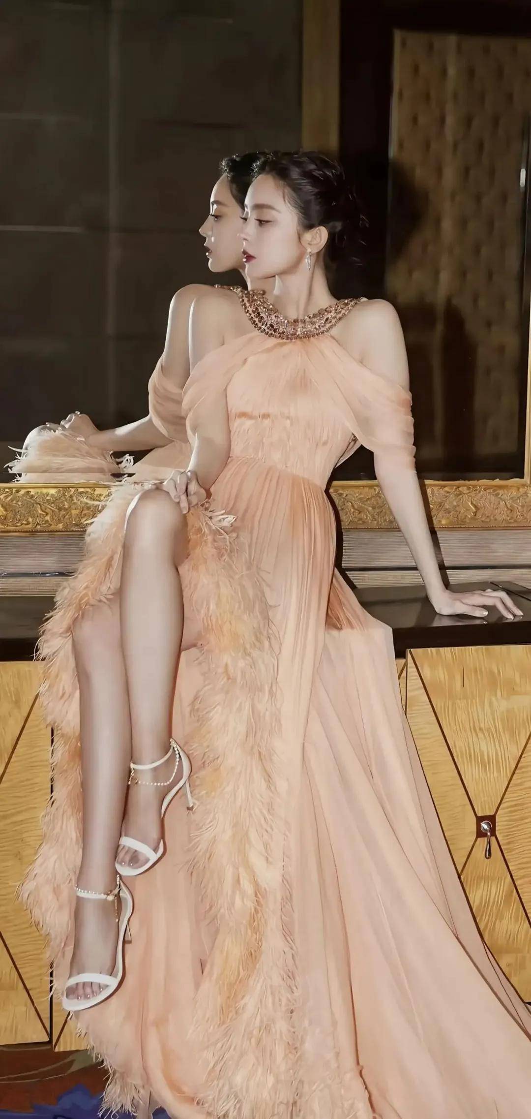 由于维吾尔族人的五官更偏向欧洲人,因此她也有着比汉族人更深邃的双眸、长睫毛和高鼻梁,她穿着一袭红色抹胸裙,露出傲人的事业线和修长的左腿,绝对性感撩人!