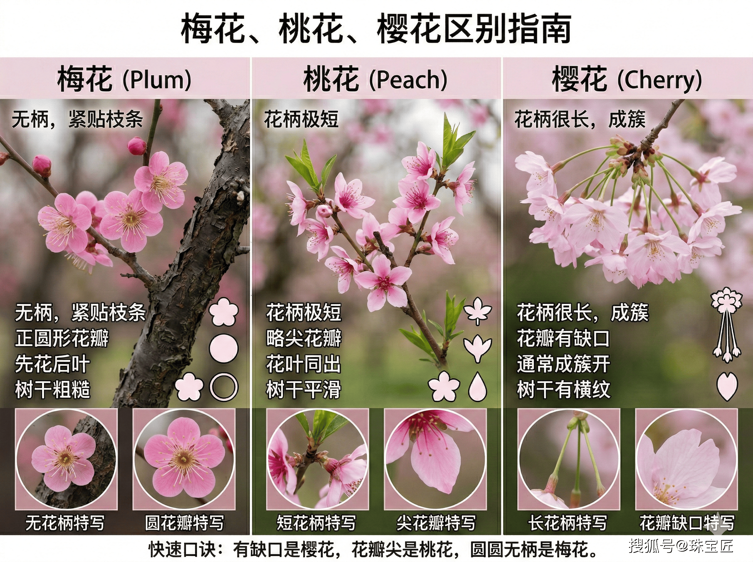 ps.经常看到很多人分不清梅花、桃花和樱花的区别,但其实很好辨别,具体可以参考下面这张图↓